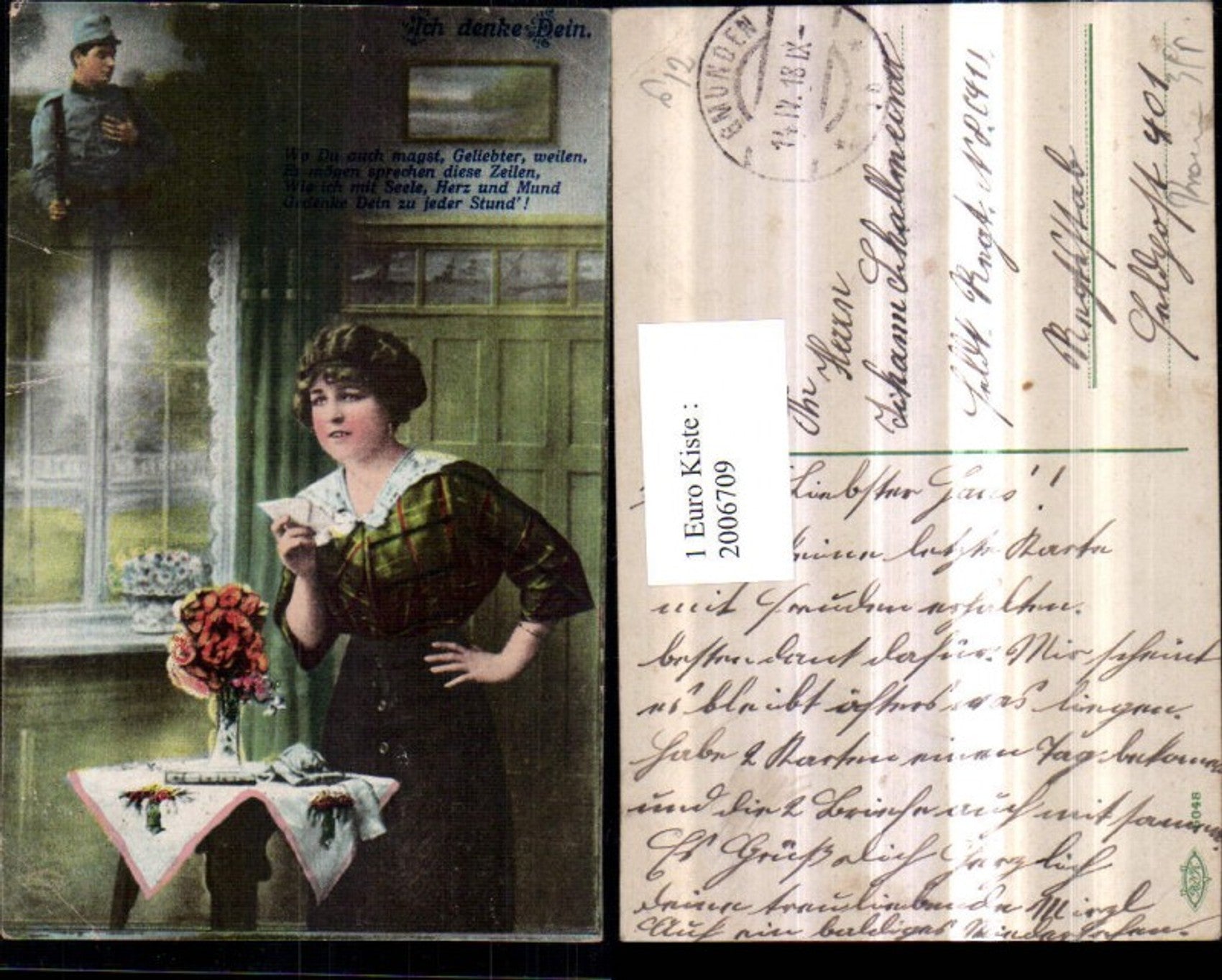 2006709,Ich denke Dein Frau m. Bluse Rock Blumenstrauß Vase Sehnsucht Fotomontage Soldat Uniform
