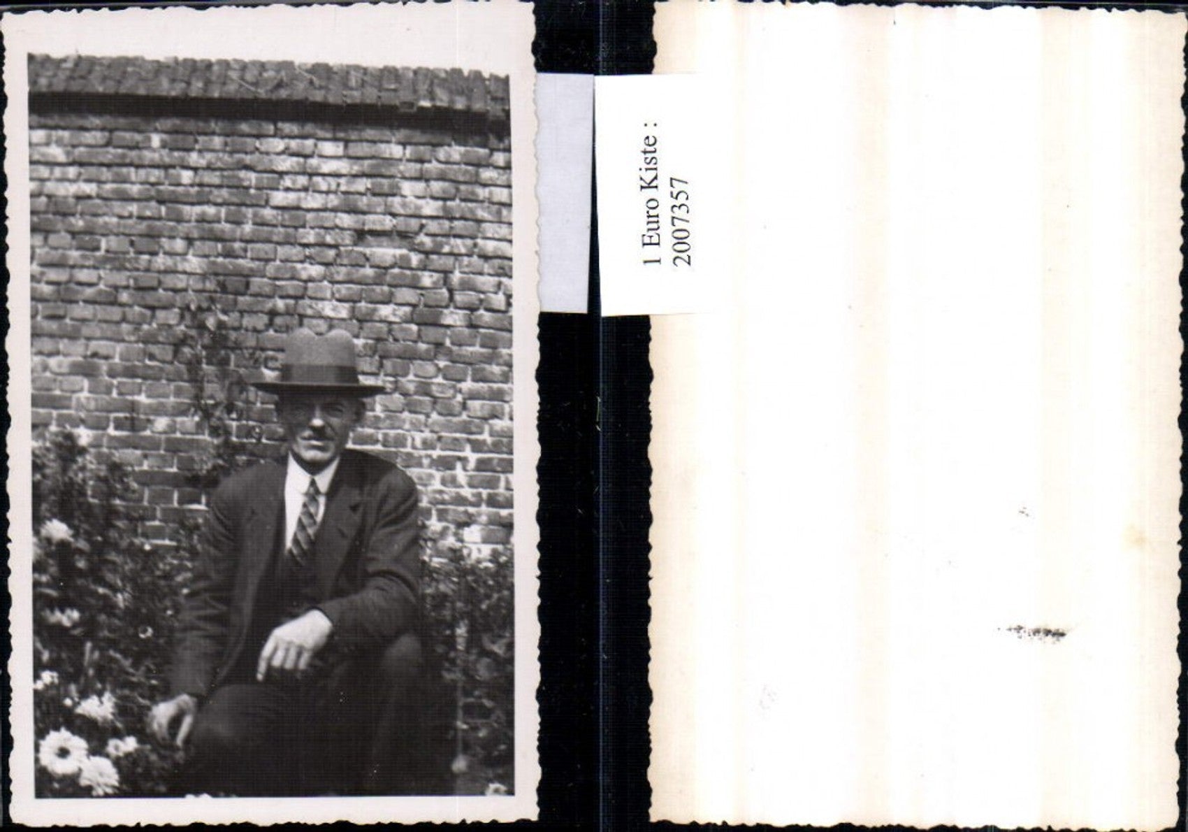 2007357,Foto Mann m. Anzug Hut Portrait Steinmauer