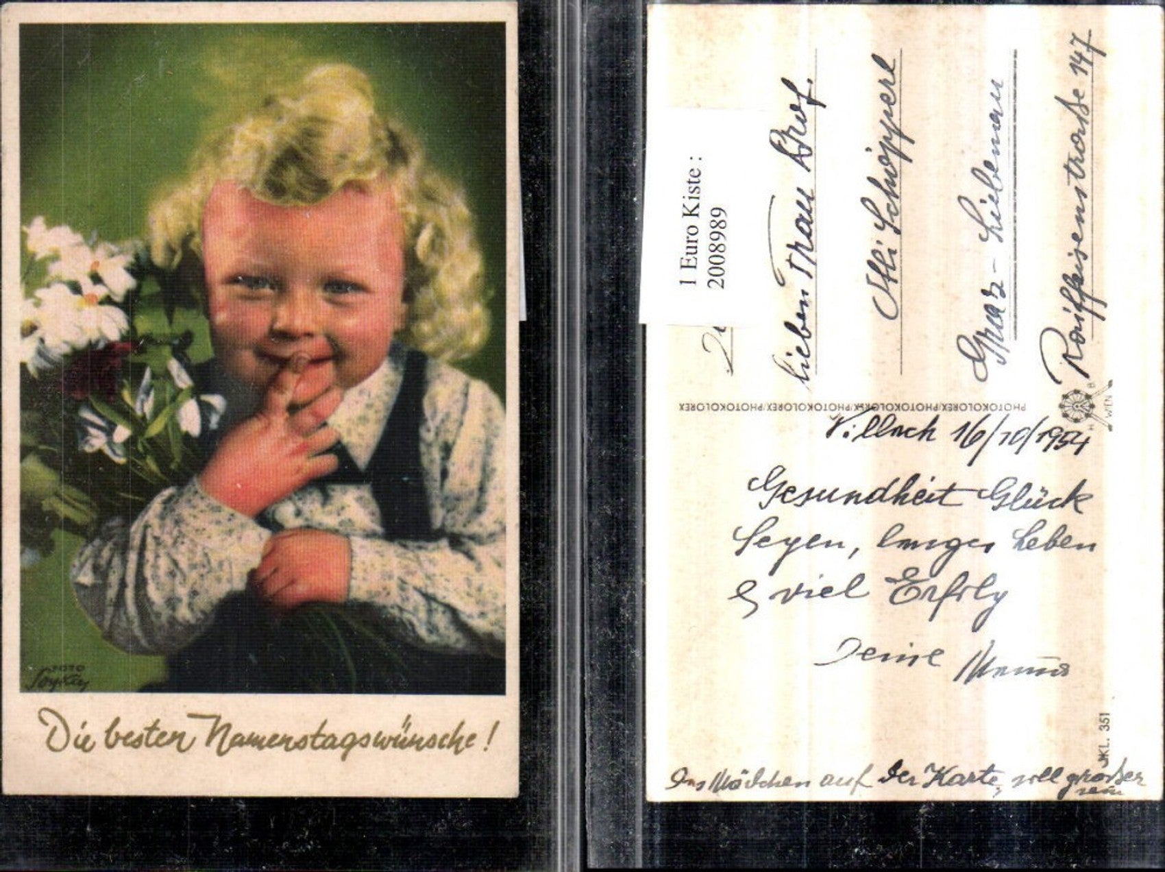 2008989,Namenstag Kind m. Blonden locken Blumenstrauß Blumen