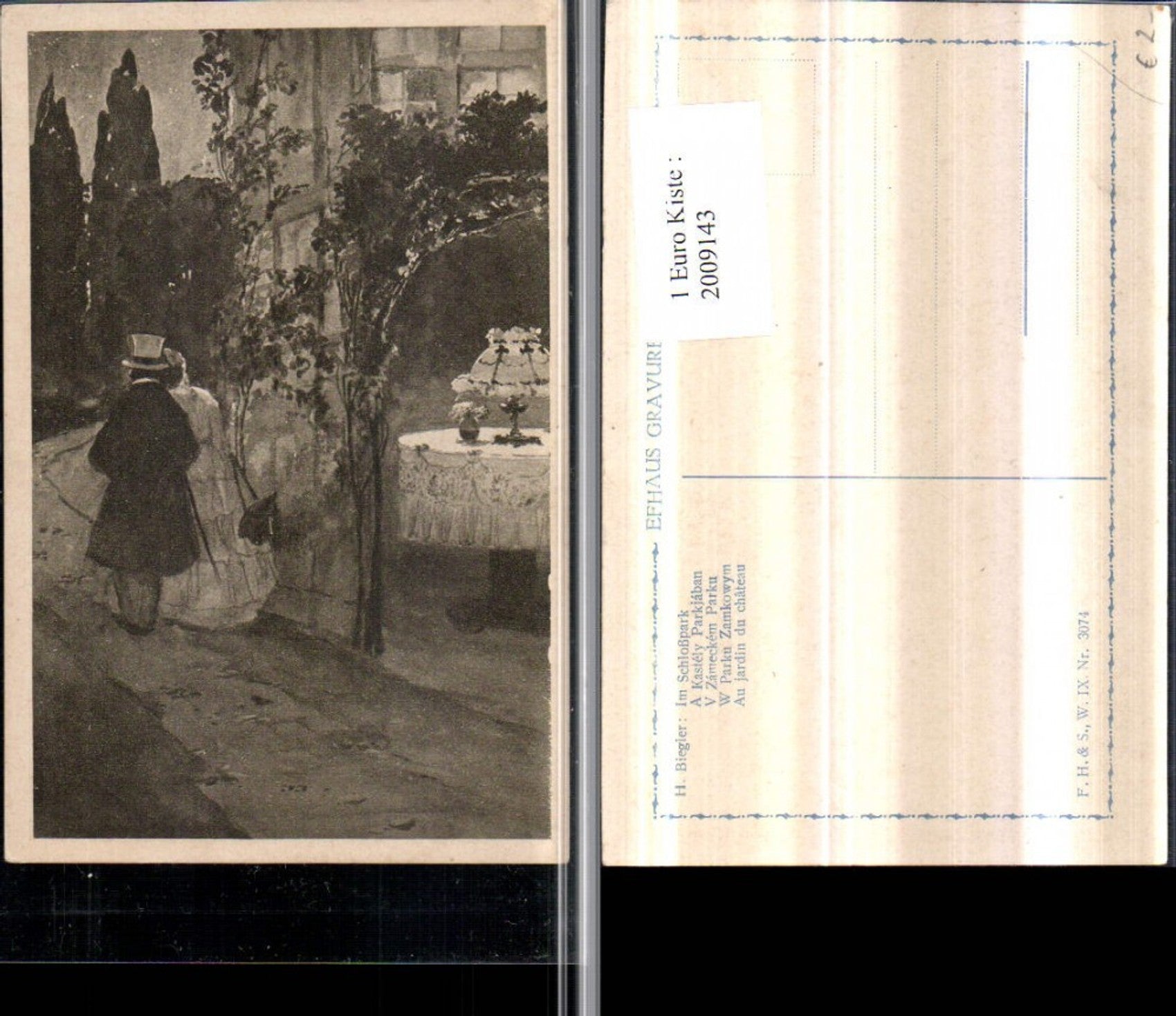 2009143,Künstler AK H. Biegler Im Schlosspark Liebe Liebespaar