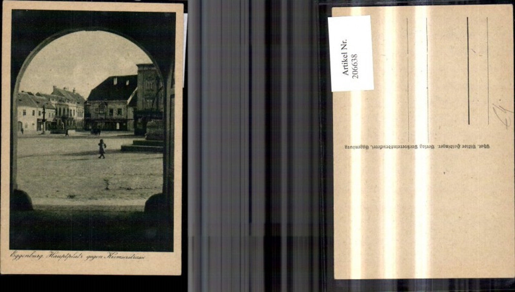 206638,Eggenburg Hauptplatz geg. Kremserstrasse Ansicht m. Torbogen i. Vordergrund Personen Kutsche Brunnen