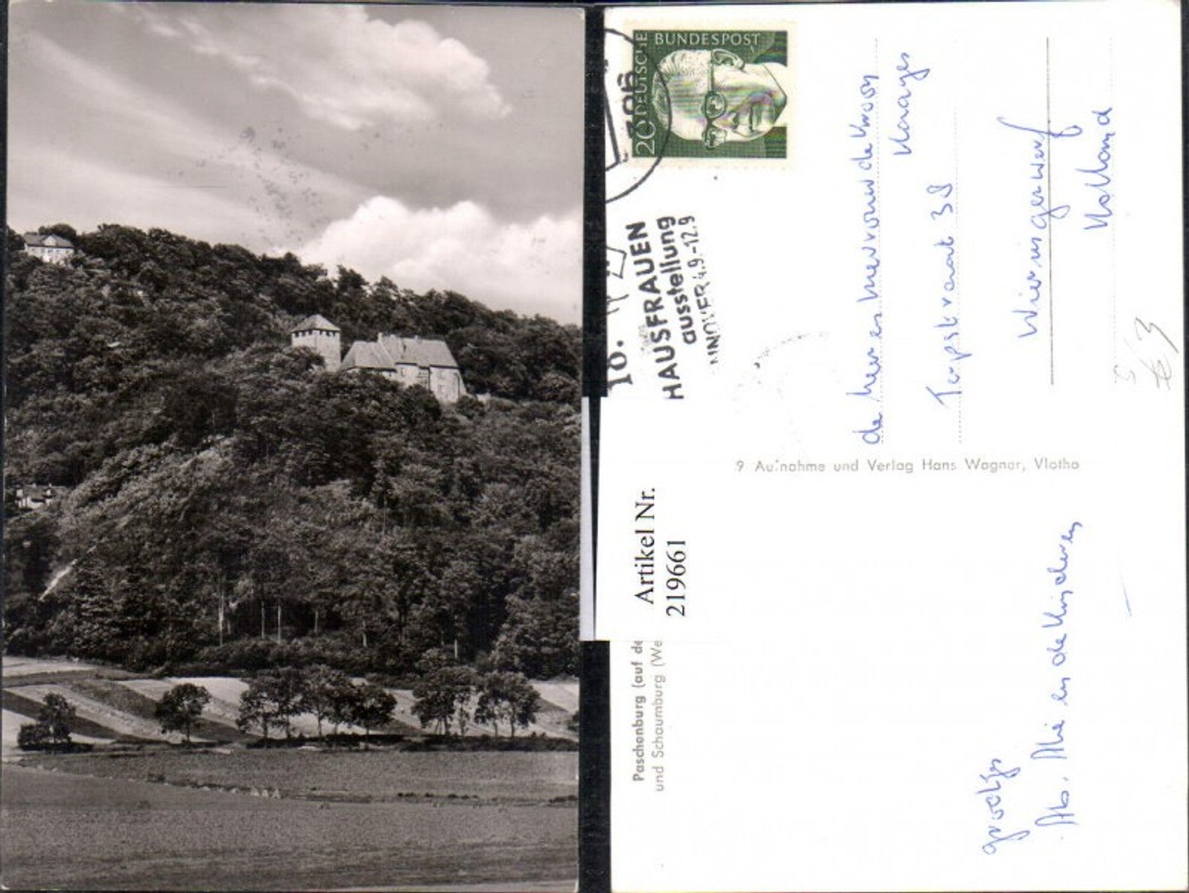 219661,Paschenburg auf dem Kamm u. Schaumburg Wesergebirge 18. Hausfrauenausstellung Stempel