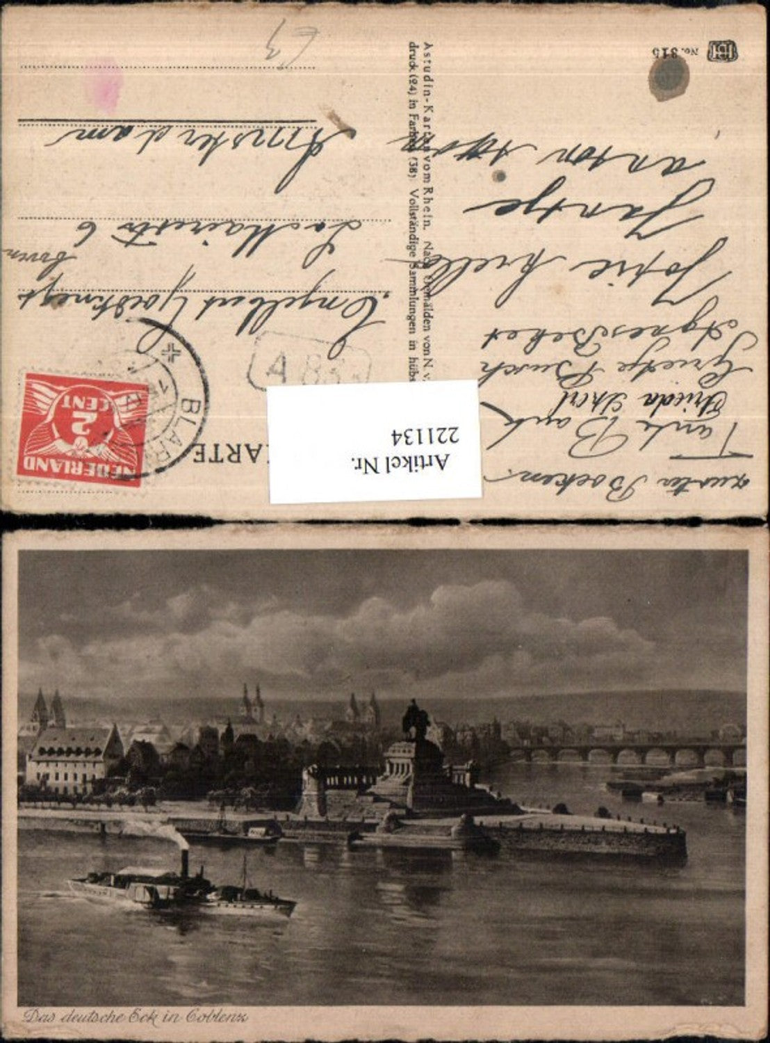 221134,Das Deutsche Eck in Koblenz m. Denkmal Dampfer