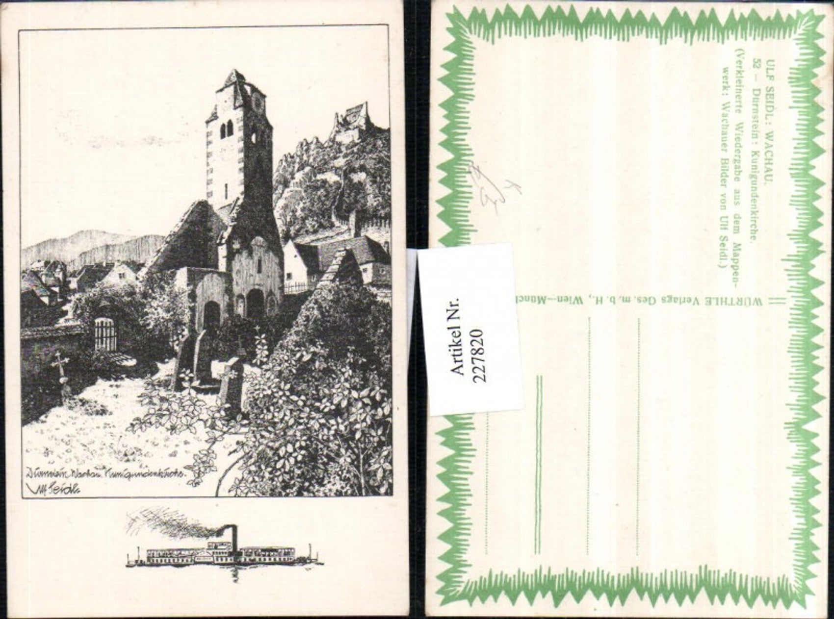 227820,Künstler AK Ulf Seidl Wachau Dürnstein Kunigundenkirche Kirche Dampfer