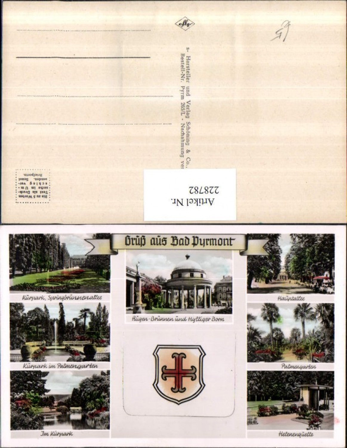 228782,Gruß aus Bad Pyrmont Leporello Augen-Brunnen u. Hylliger Born Kurpark Palmengarten Mehrbildkarte