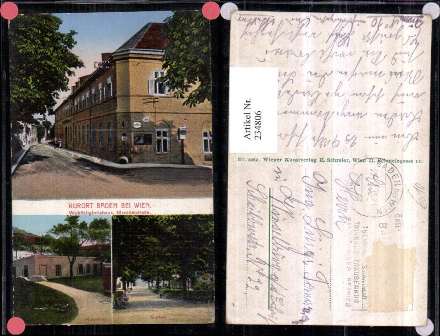 234806,Baden b. Wien Wohltätigkeitshaus Marchetstraße Garten Hausbad Mehrbildkarte