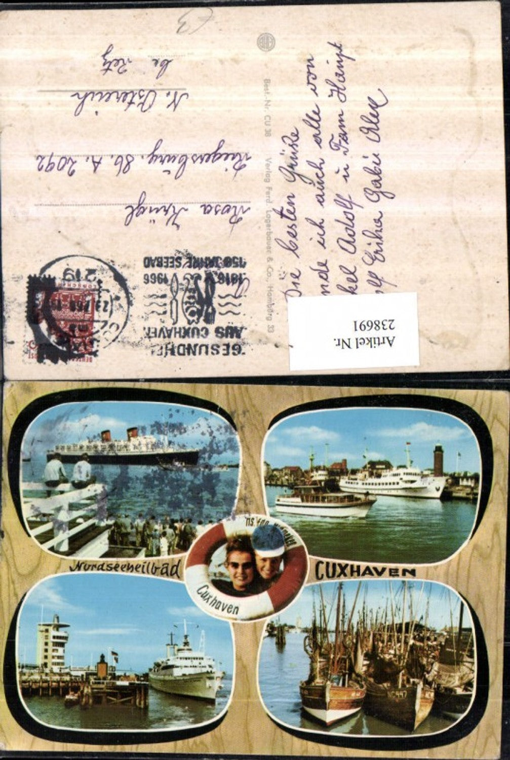 238691,Nordseebad Cuxhaven Dampfer Schiffe Segelschiffe Rettungsring Mehrbildkarte