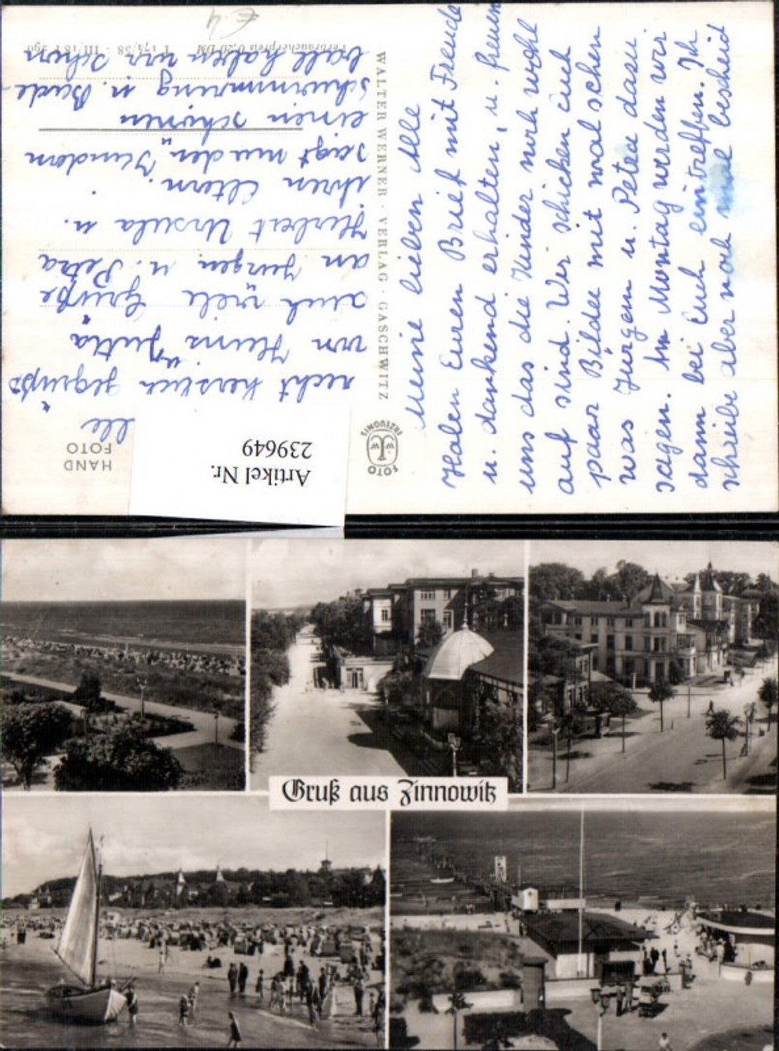 239649,Gruß aus Zinnowitz Strand Strandleben Promenade Segelboot Mehrbildkarte