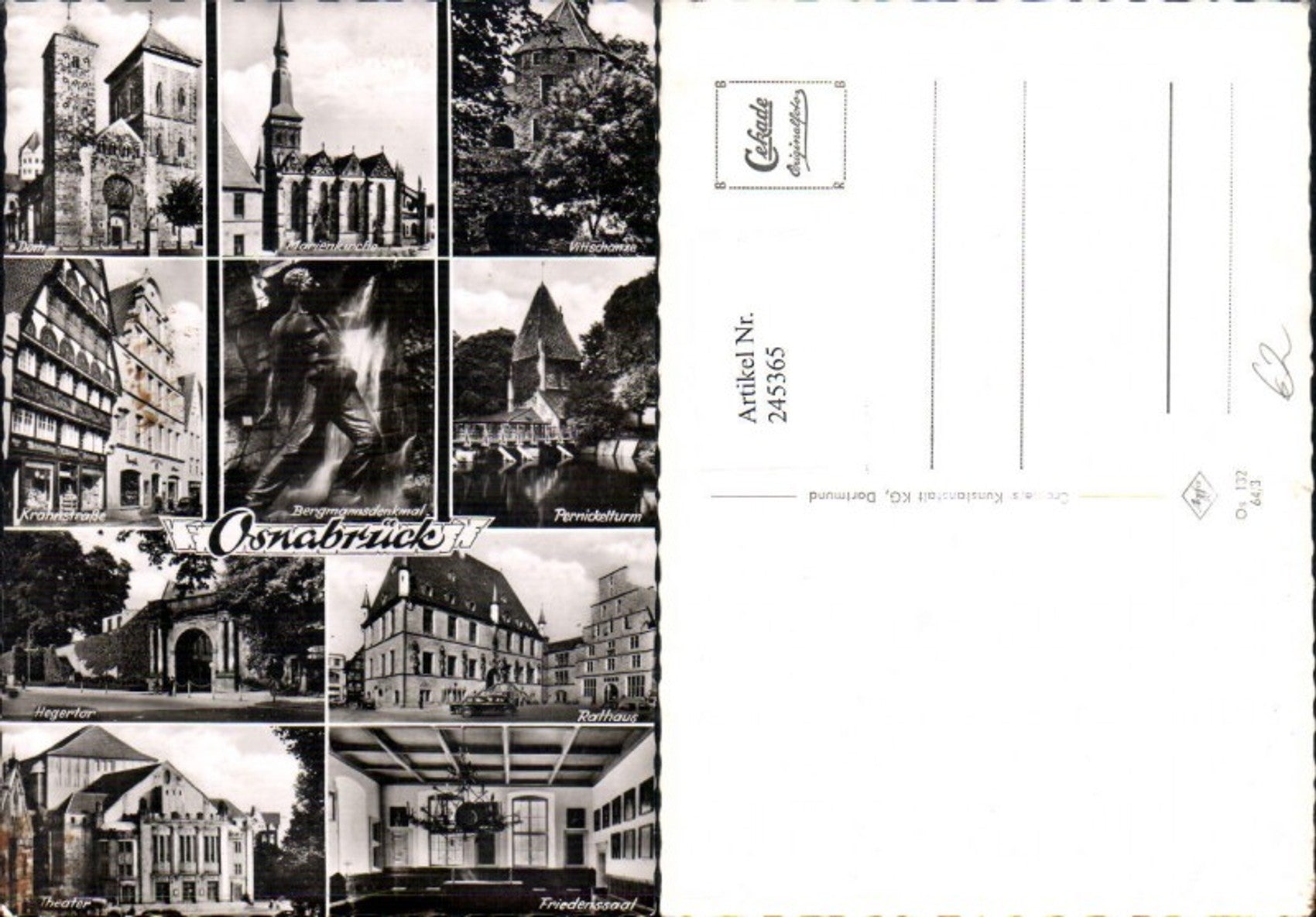 245365,Osnabrück Dom Kirche Hegertor Theater Rathaus Bergmannsdenkmal Vitischanze Pernickelturm Mehrbildkarte