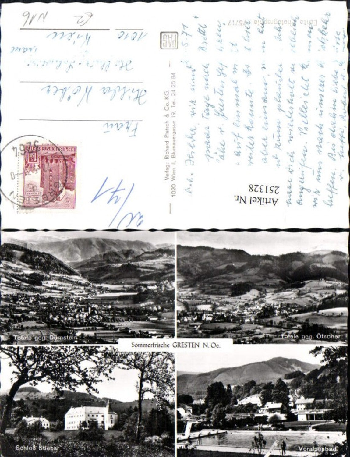 251328,Gresten Totale m. Dürnstein u. Ötscher Schloss Stiebar Voralpenbad Freibad Mehrbildkarte