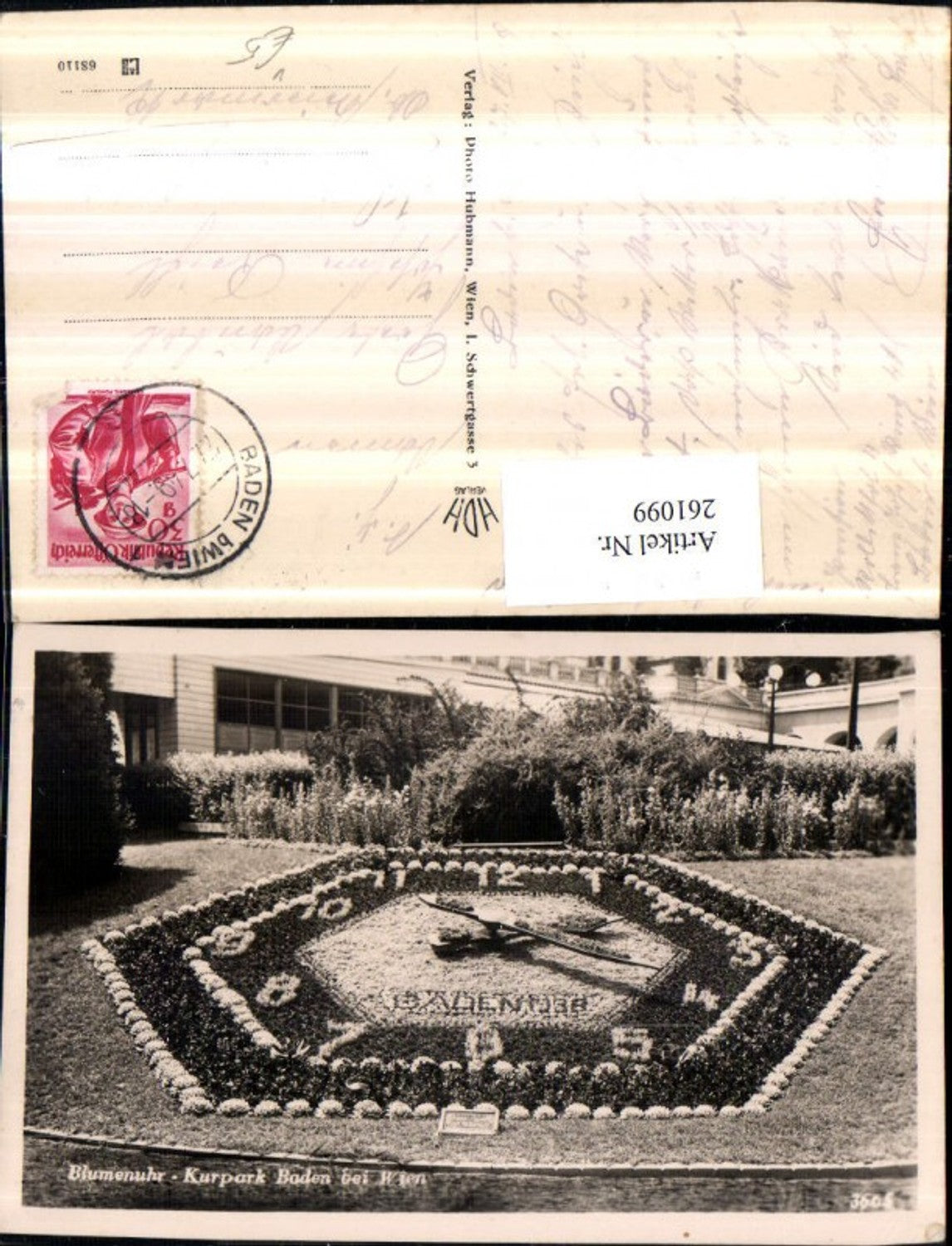 261099,Baden b. Wien Kurpark Blumenuhr pub Foto Hubmann 3665