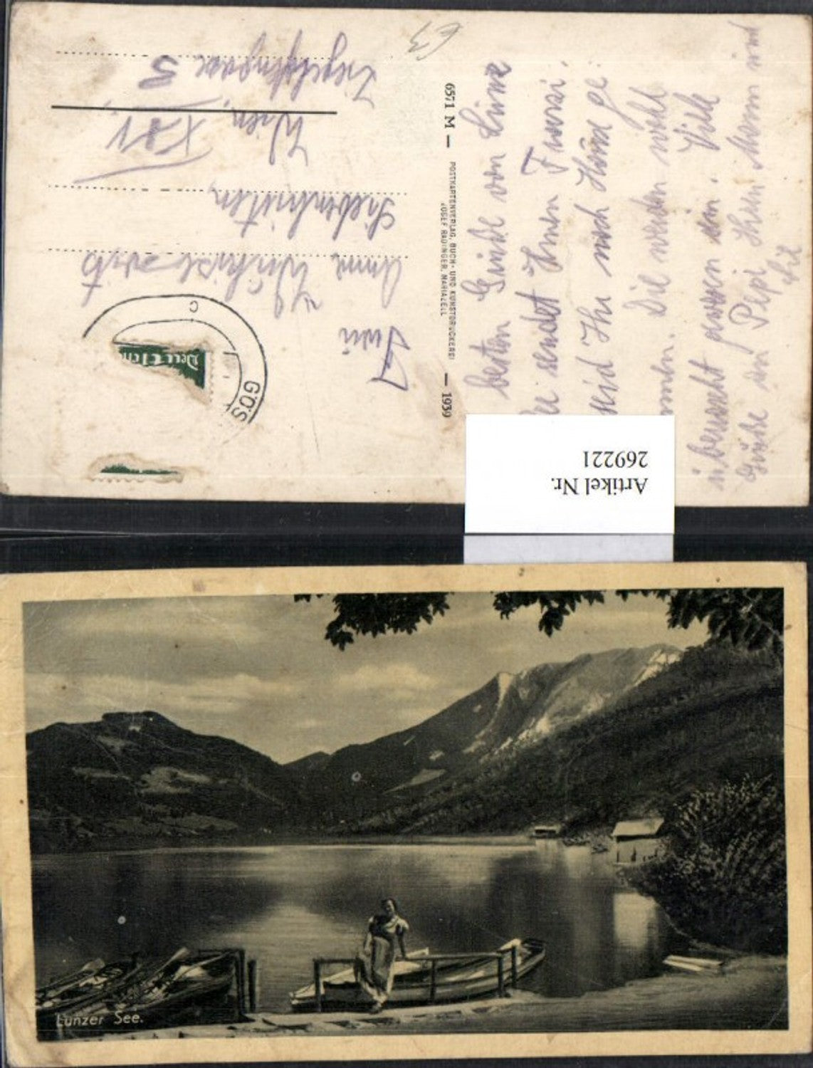 269221,Lunz Lunzer See Ruderboote Frau posiert Bergkulisse