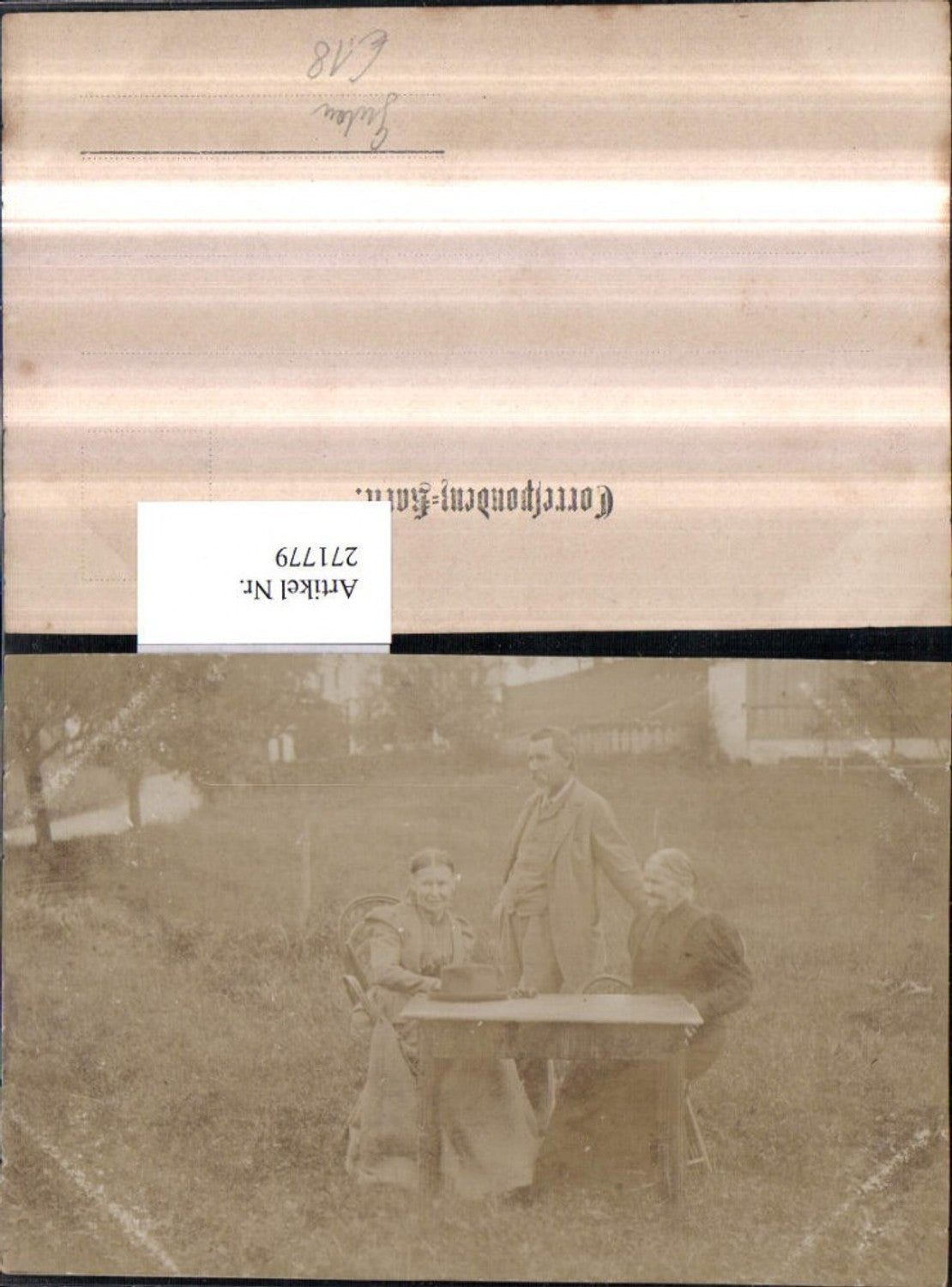 271779,Foto AK Gutau Mann u. Frauen Tisch Stühle Wiese