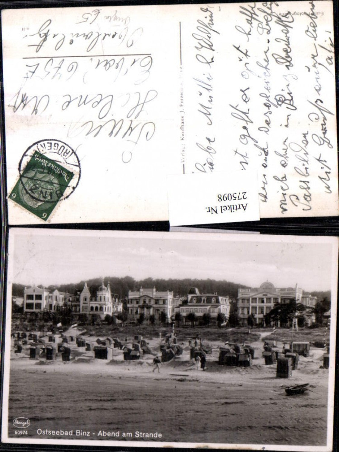 275098,Ostseebad Binz Abend am Strand Strandleben Strandkörbe
