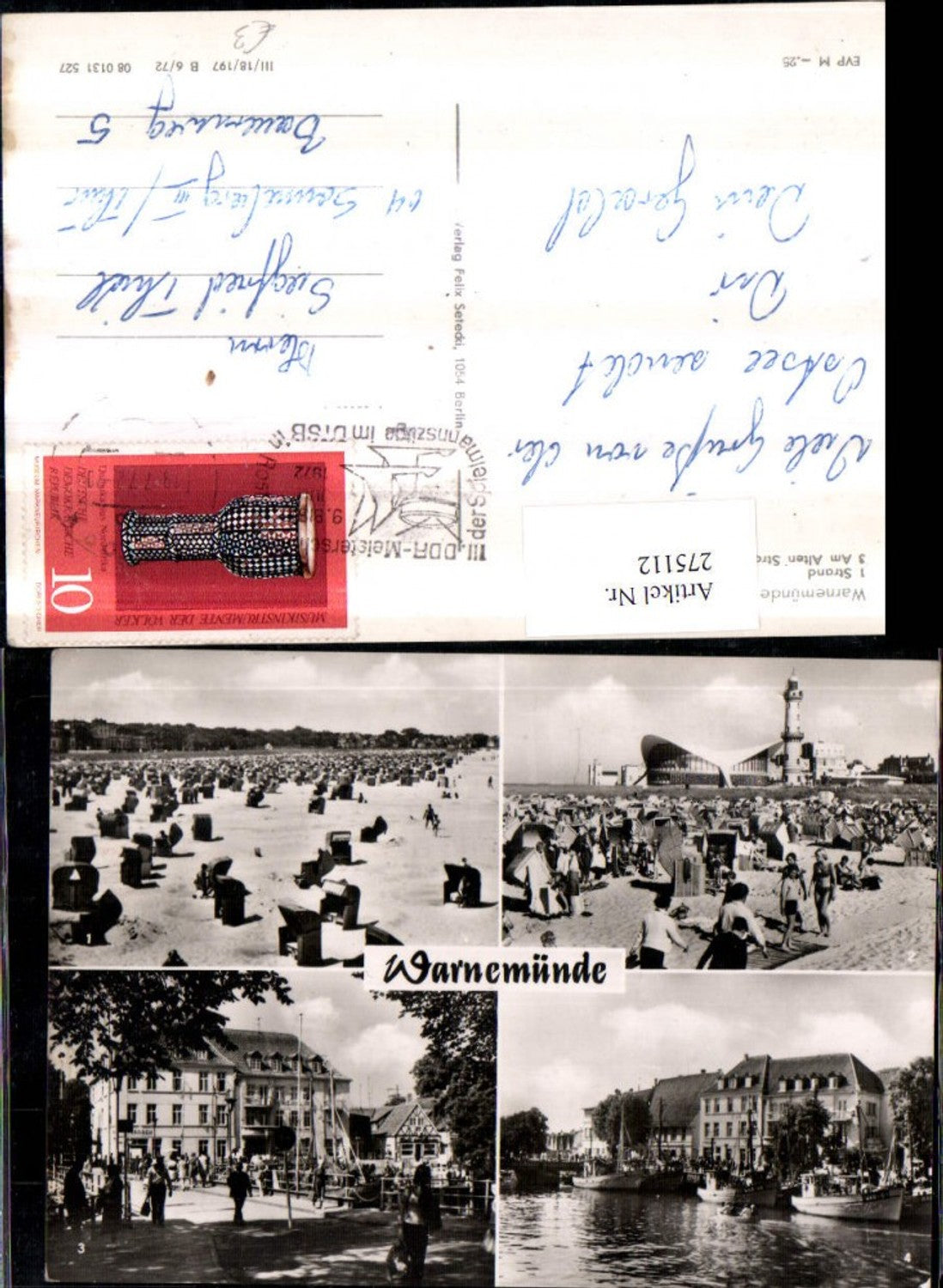 275112,Warnemünde Teepott Strand Strom Strandleben Strandkörbe Fischerboote Mehrbildkarte