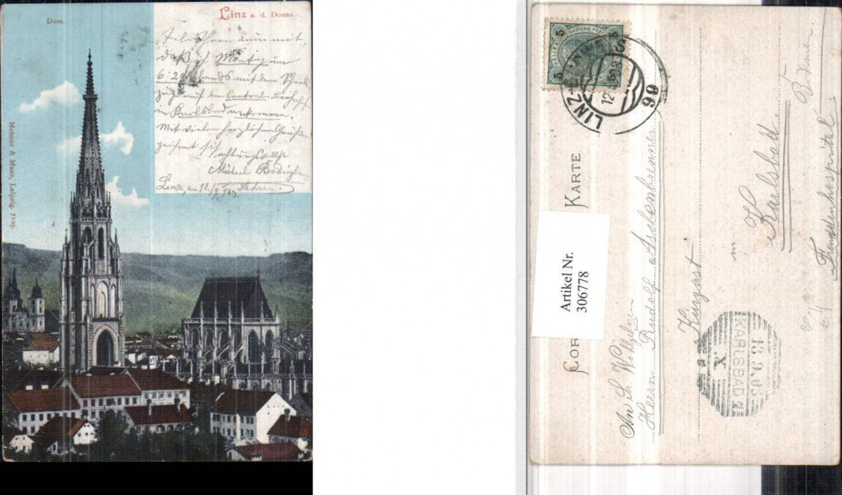 306778,Linz an d. Donau Dom Kirche Bahnpost Zug 99