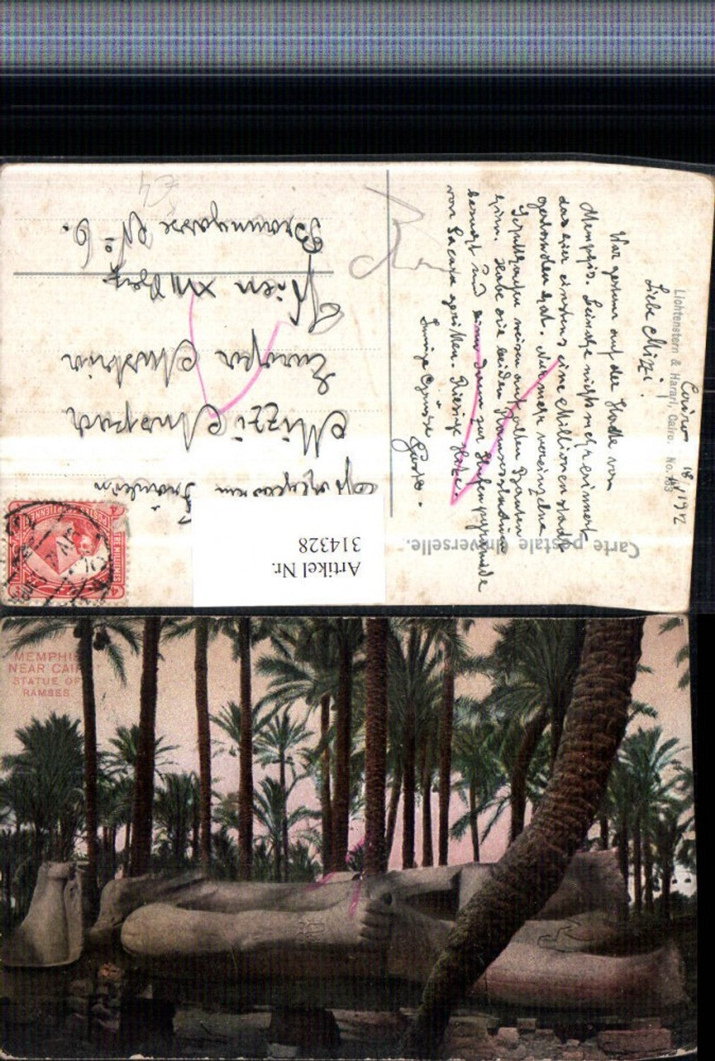 314328,Künstler AK Memphis near Cairo Statue of Ramses Palmen