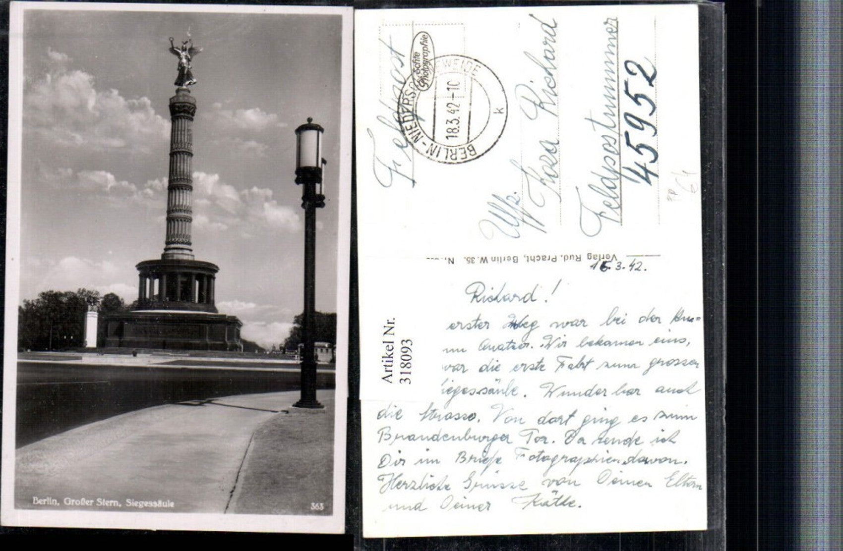 318093,Berlin Großer Stern Siegessäule Feldpost Nr. 45952