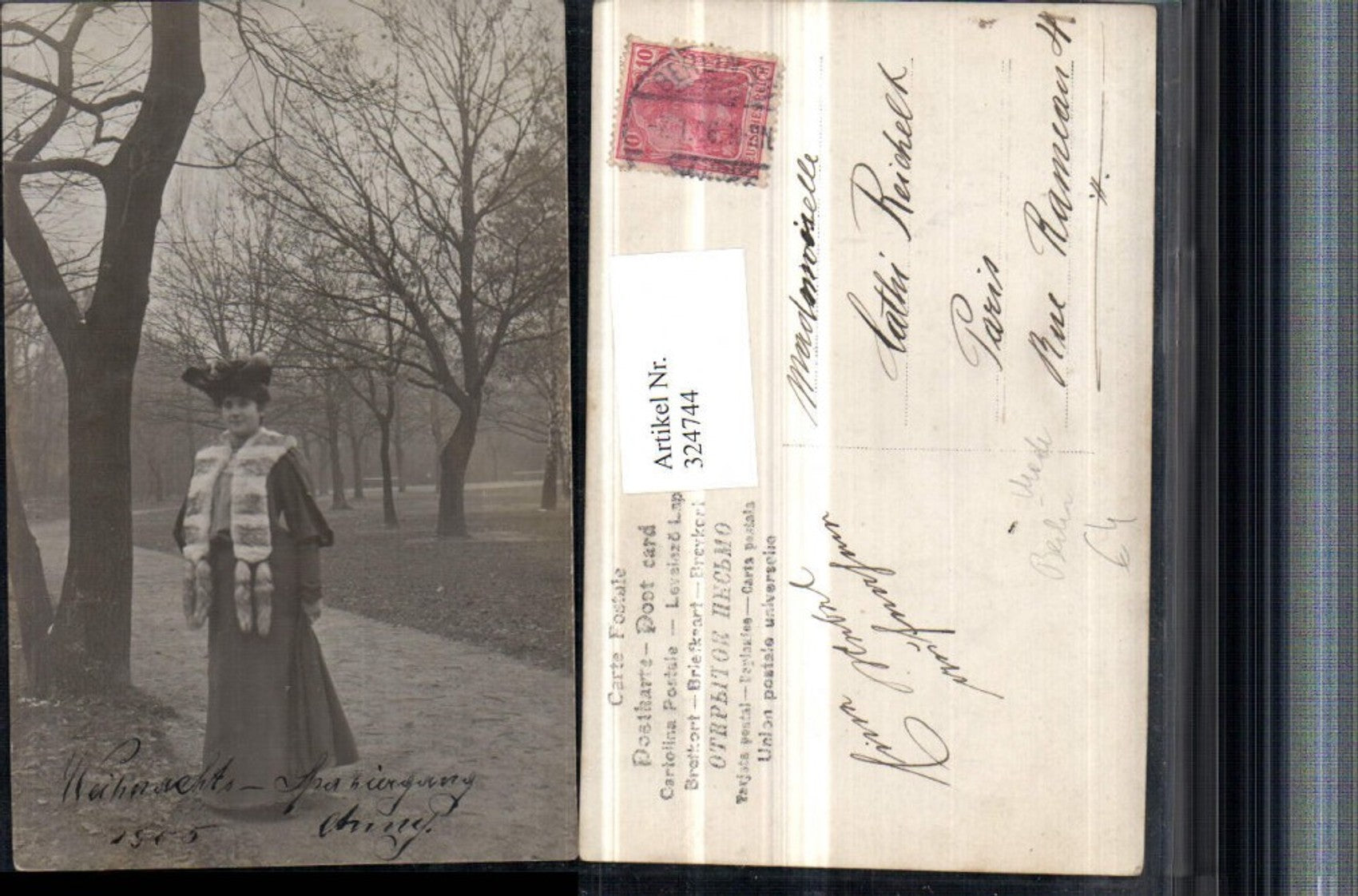 324744,Foto AK Berlin Park Frau m. Hut Stola Mode 1905