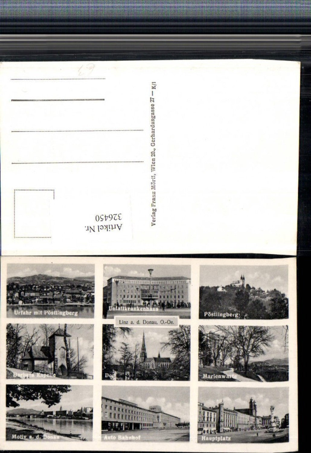 326450,Linz an d. Donau Unfallkrankenhaus Pöstlingberg Hauptplatz Auto-Bahnhof Dom Mehrbildkarte