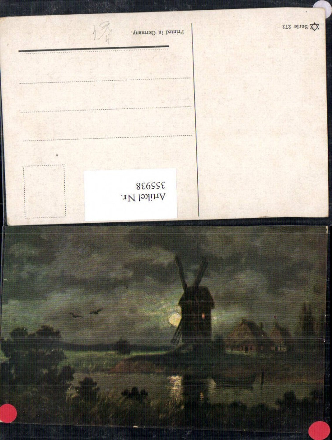 355938,Künstler Ak Windmühle Boot b. Mondschein