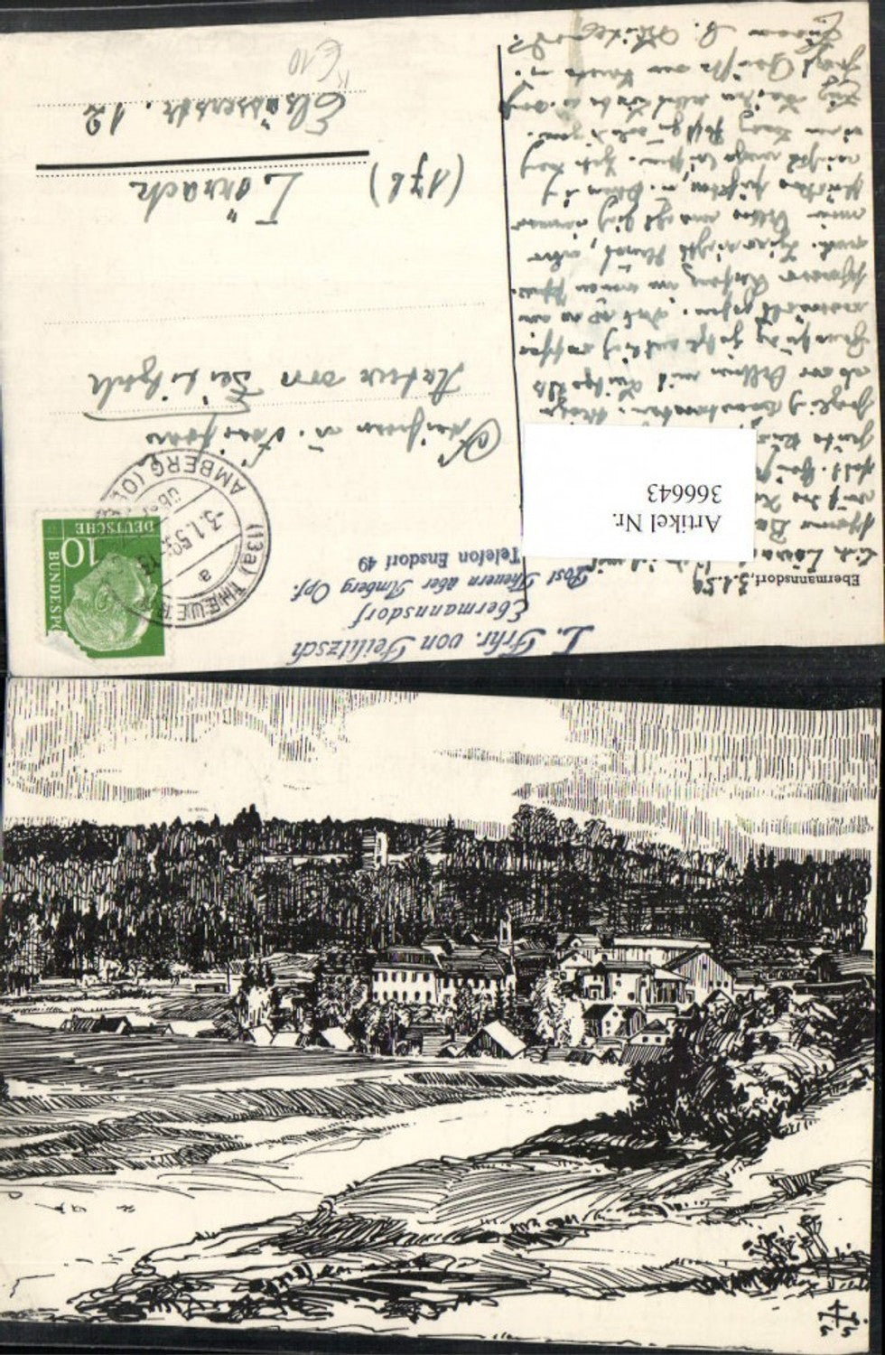366643,Künstler AK Ebermansdorf Totale m. Burgruine Eberburg