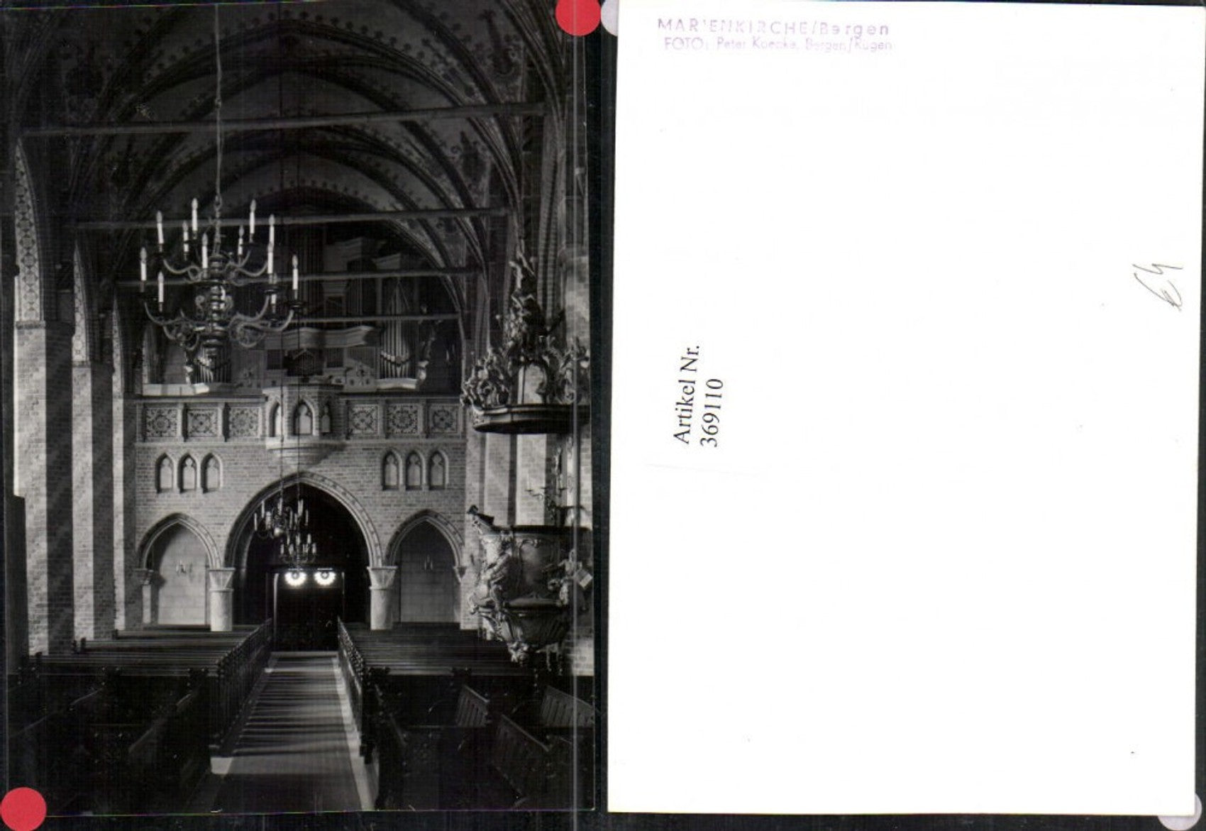 369110,Fotokarte Bergen auf Rügen Marienkirche Innenansicht Kanzel Orgel