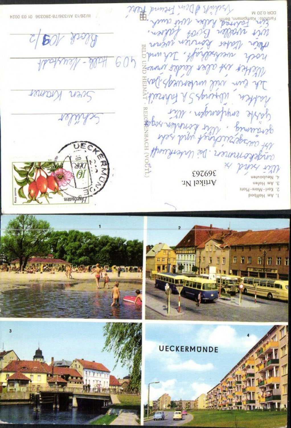 369263,Ueckermünde Haffbad Strandbad Hafen Brücke Autobusse Busse Mehrbildkarte