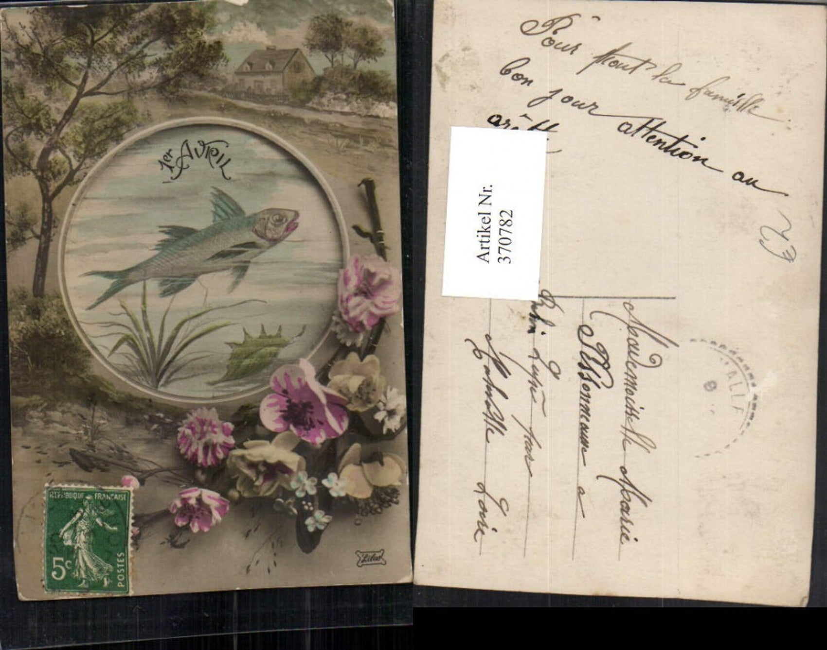 370782,1. April Fisch Passepartout Landschaft Blumen