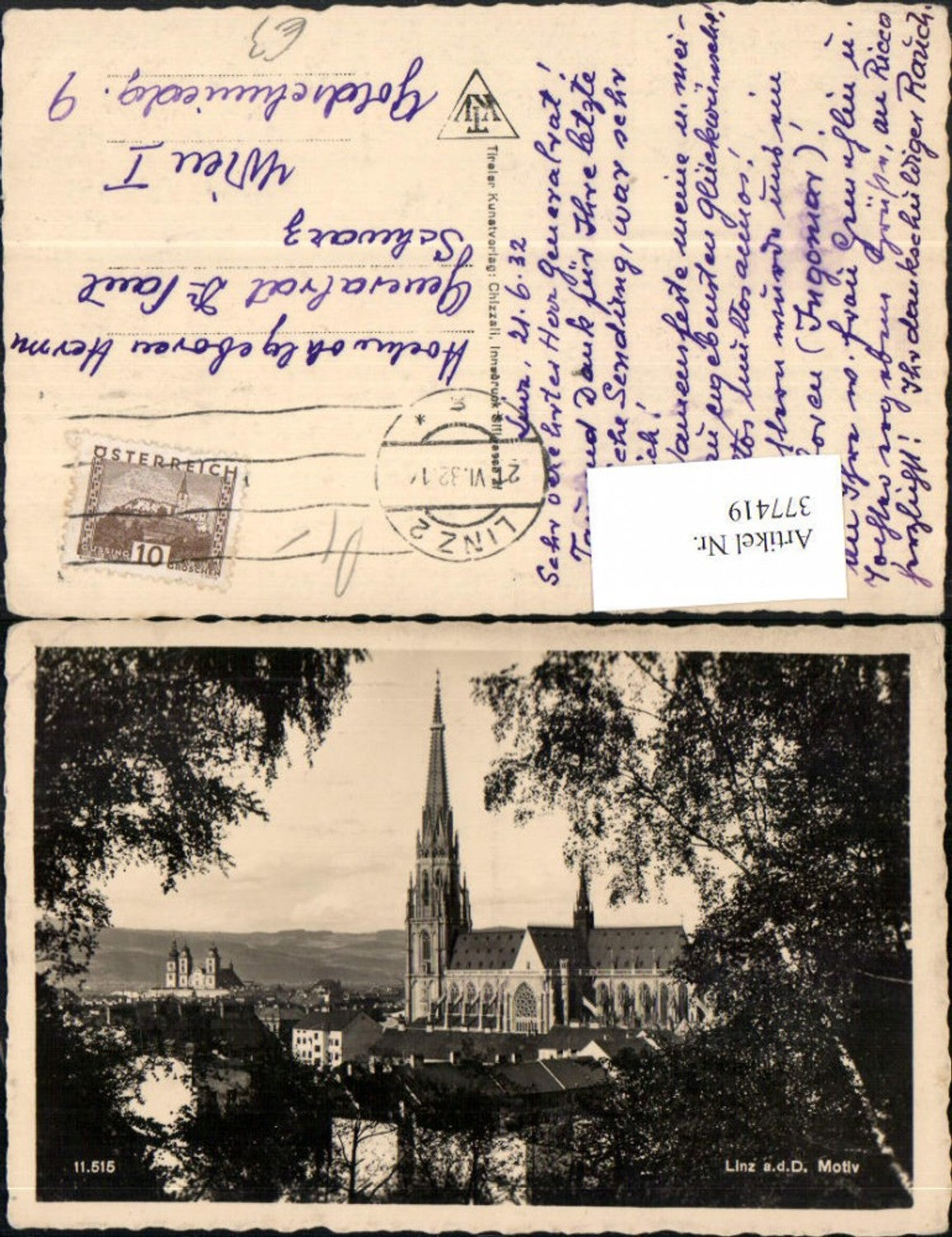 377419,Linz an d. Donau Teilansicht Dom Motiv