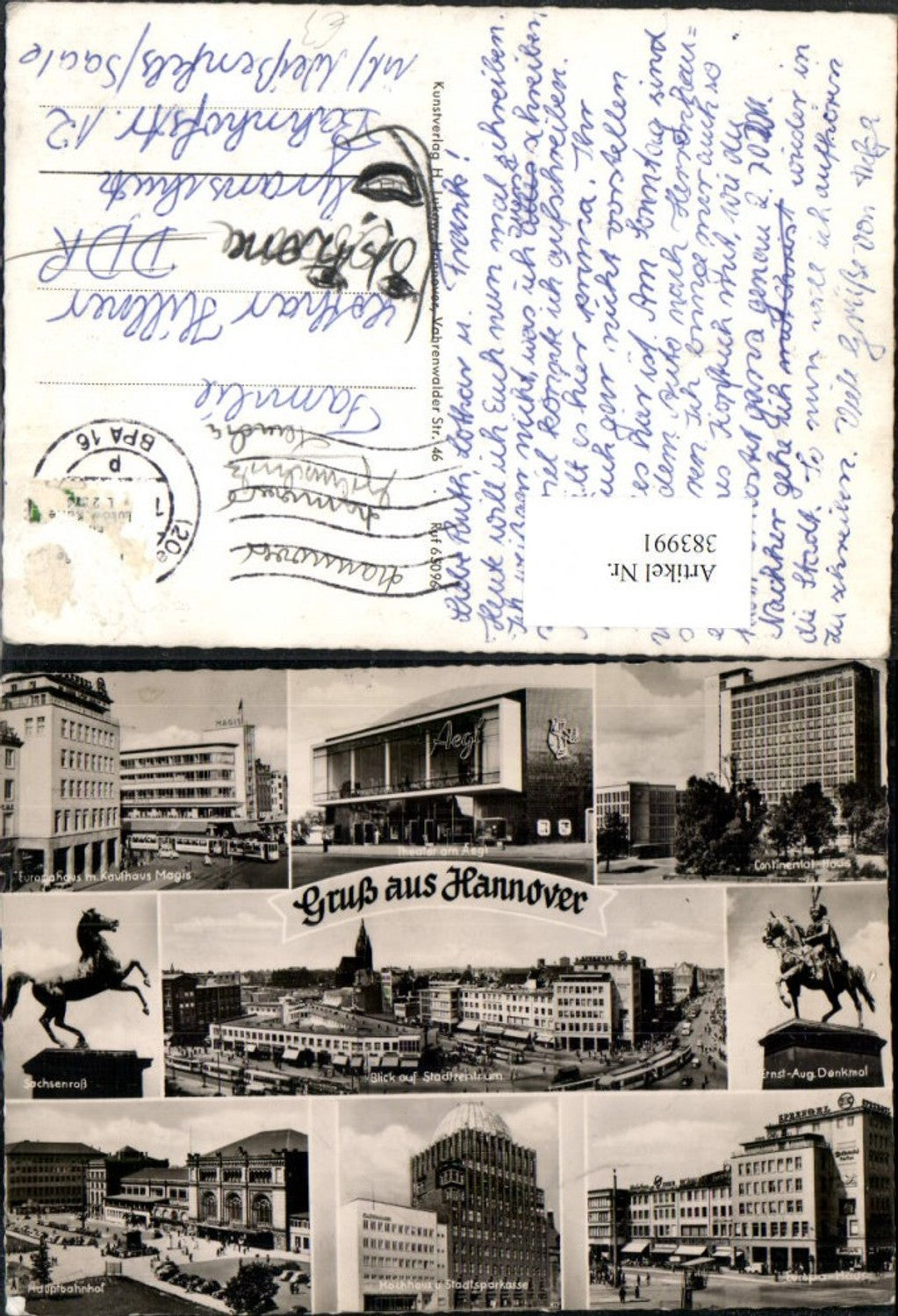 383991,Hannover Theater Bahnhof Europahaus Kaufhaus Denkmäler Mehrbildkarte