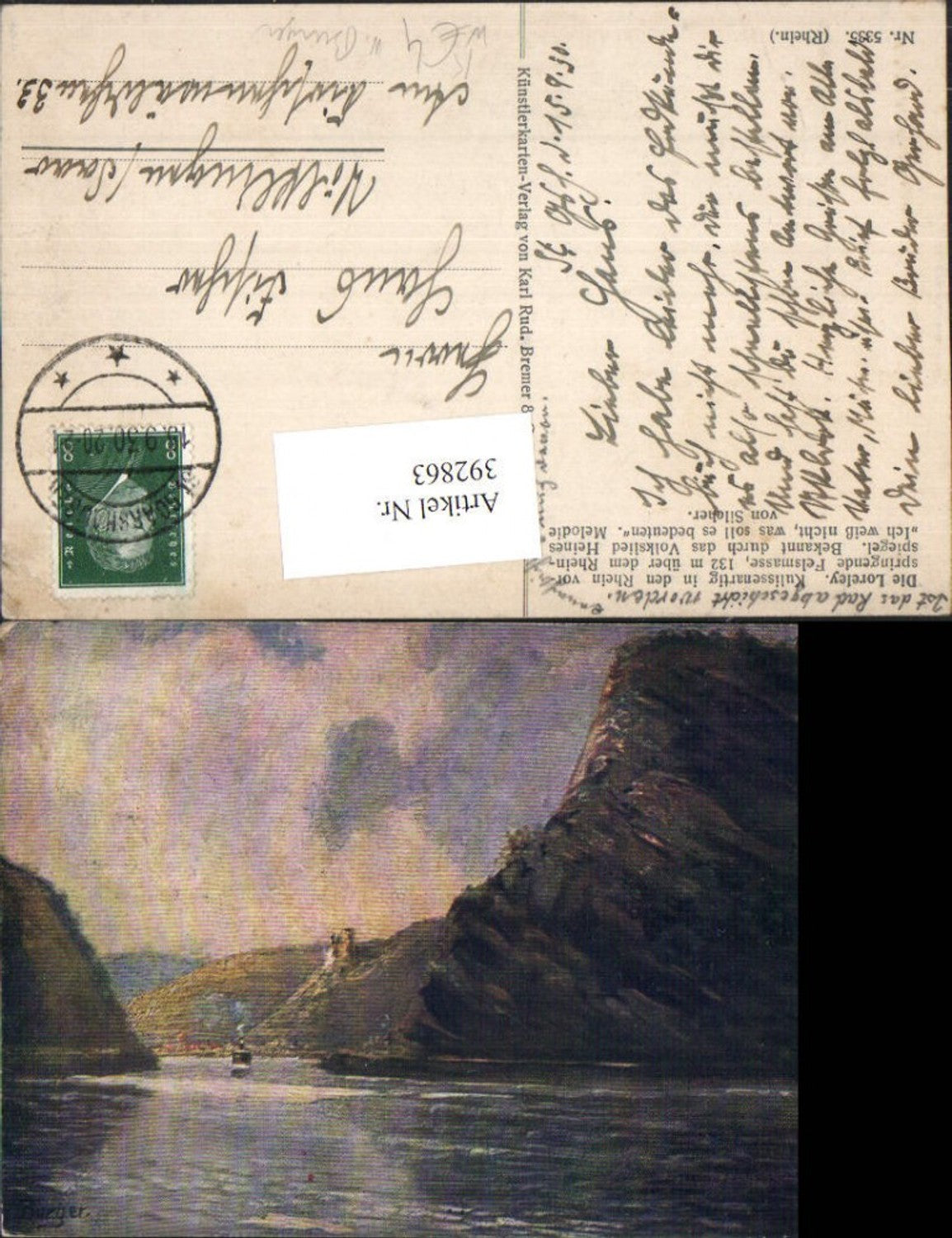 392863,Künstler AK W. Burger Loreley am Rhein Felsen b. St. Goarshausen