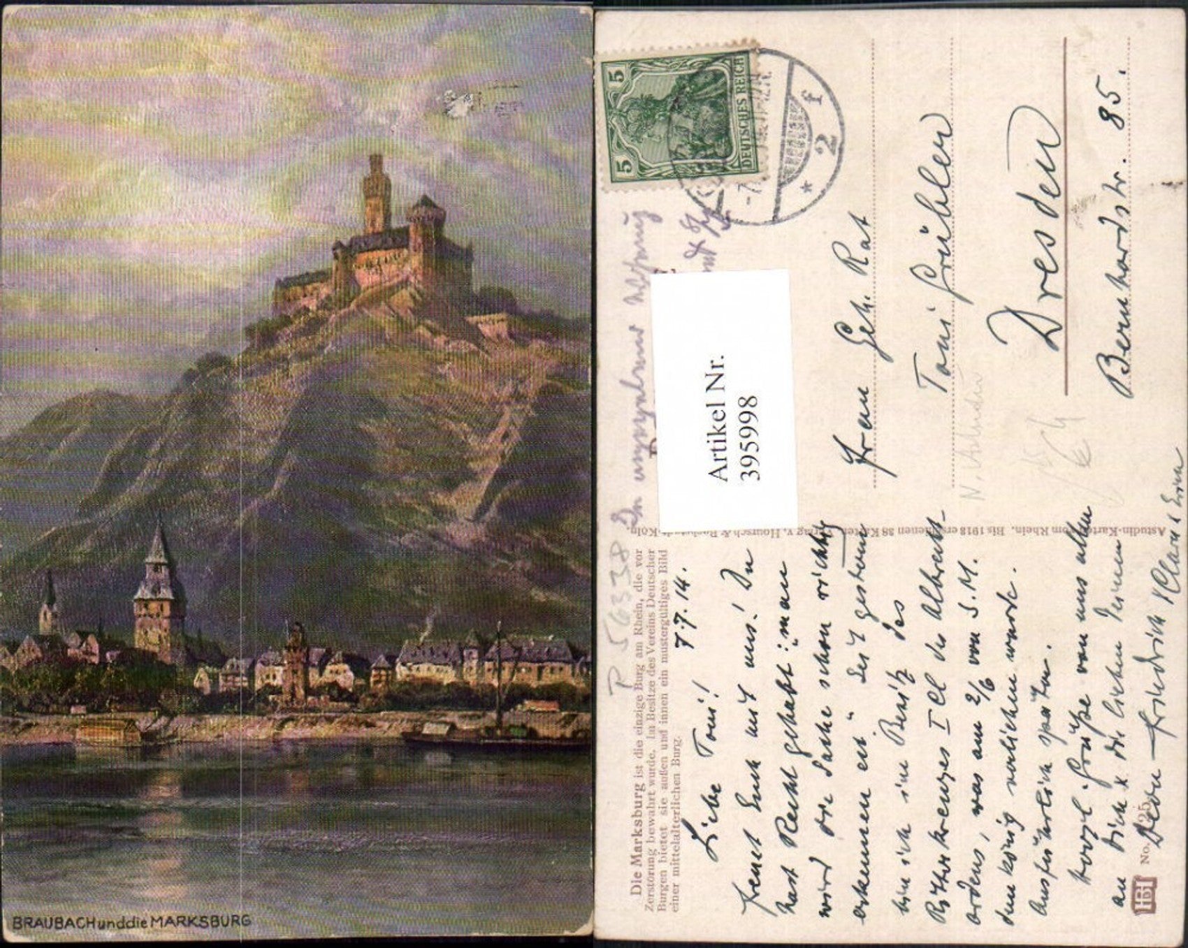 395998,Künstler AK N. Astudin Braubach Teilansicht m. Marksburg