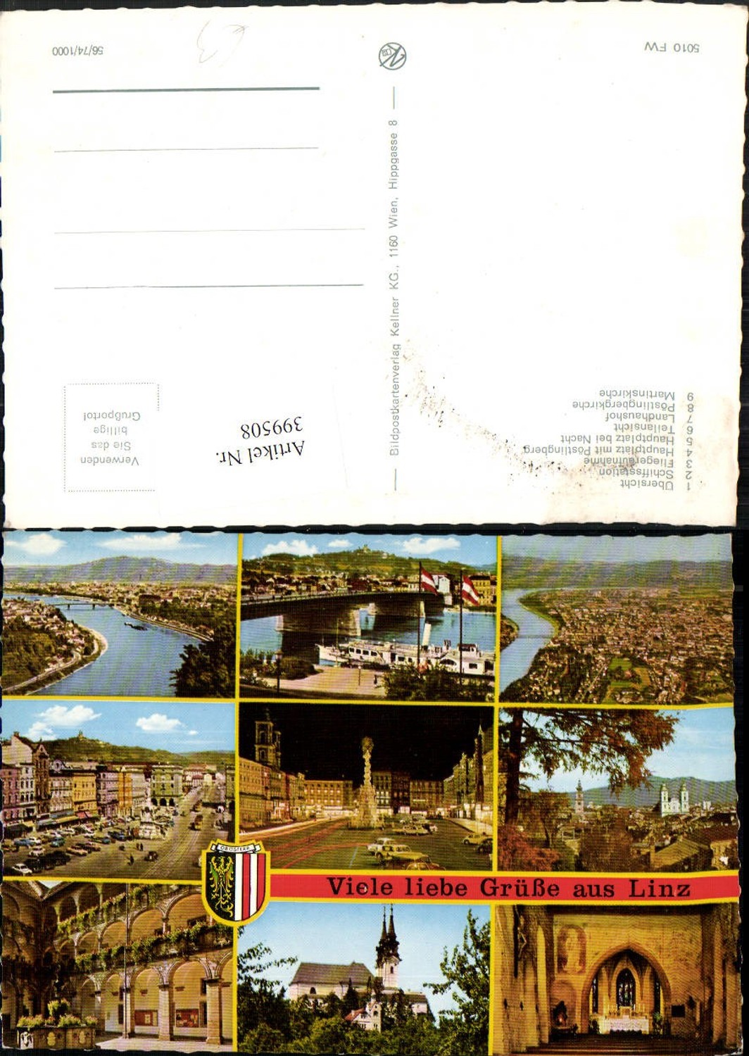 399508,Linz an d. Donau Totale Schiffstation Hauptplatz Landhaushof Kirche Mehrbildkarte