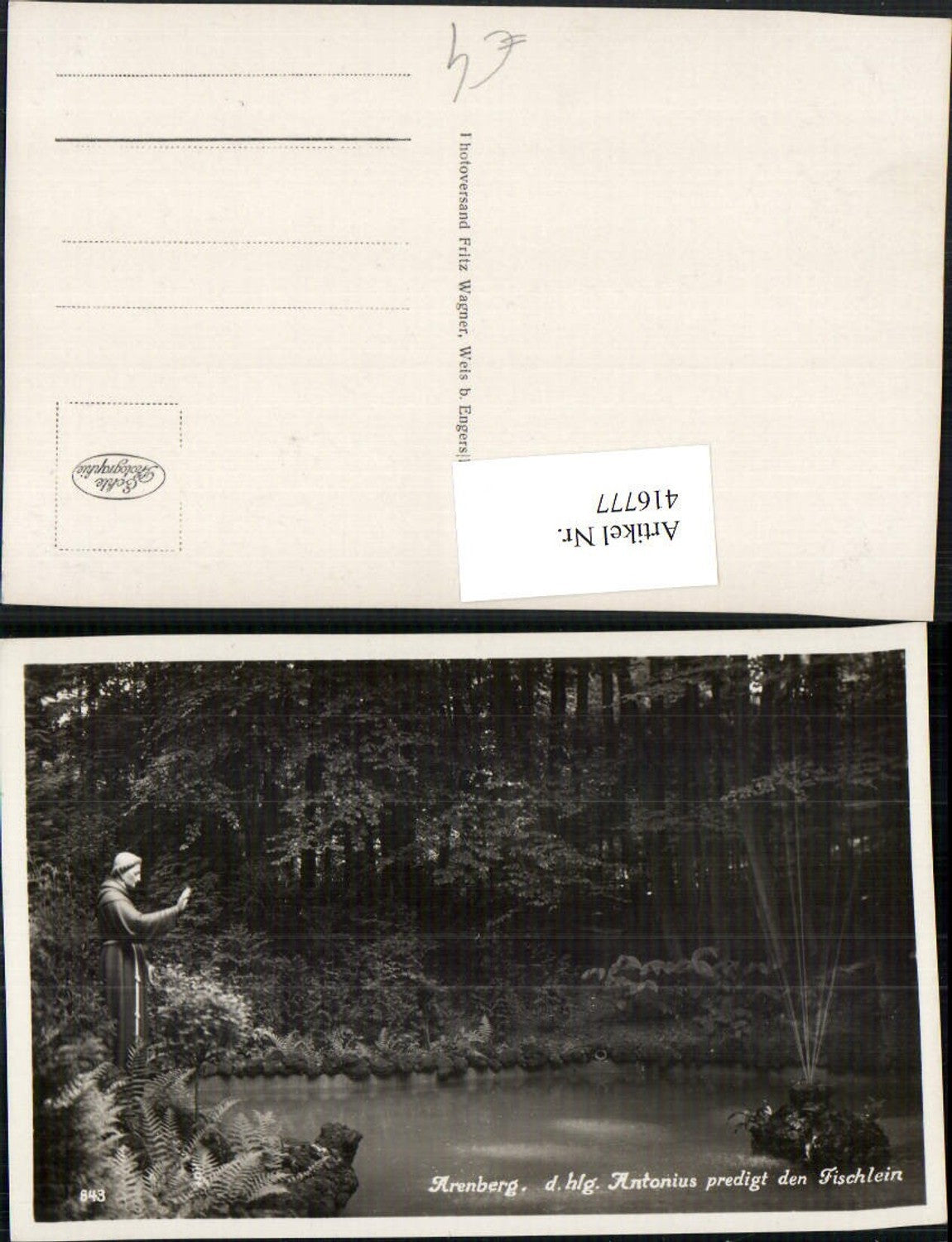 416777,Koblenz Arenberg Heilige Antonius predigt den Fischlein Statue Teich