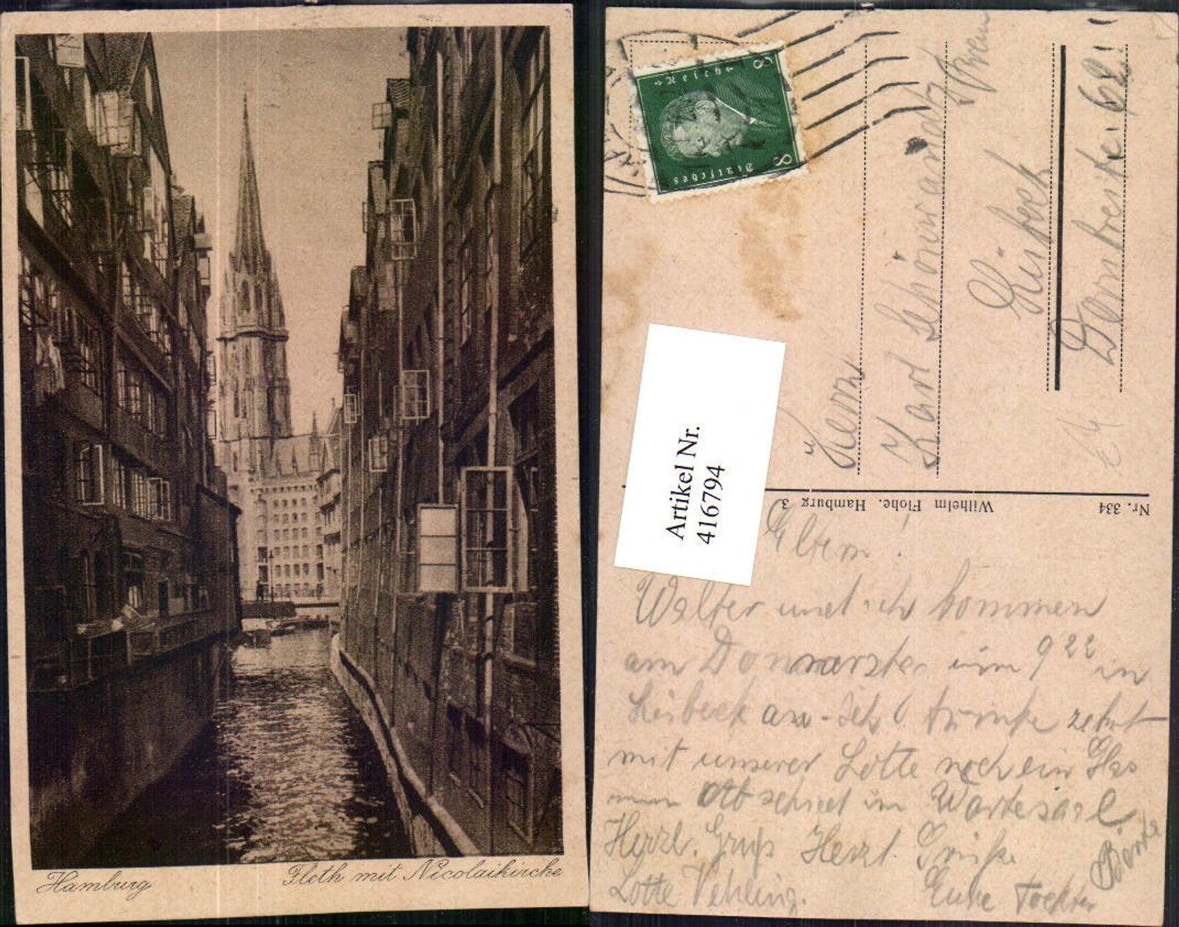 416794,Hamburg Fleth Kanal m. Nicolaikirche Kirche