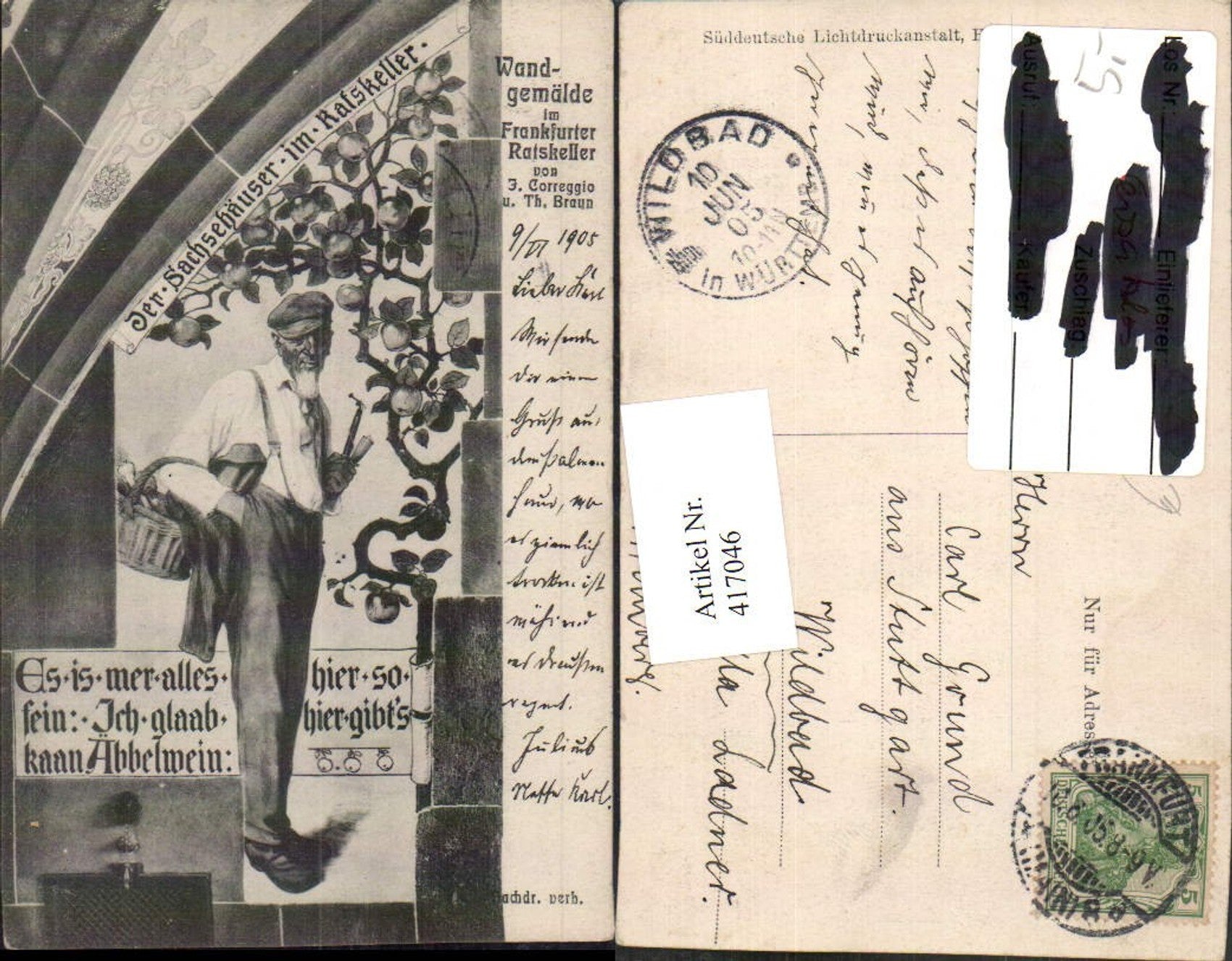 417046,Frankfurt am Main Ratskeller Wandgemlde Sachsehäuser Mann Pfeife Korb