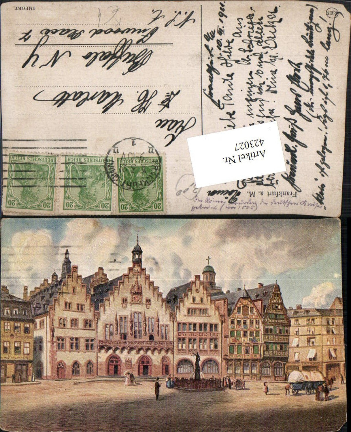 423027,Künstler AK Frankfurt am Main Römer Häuser Brunnen