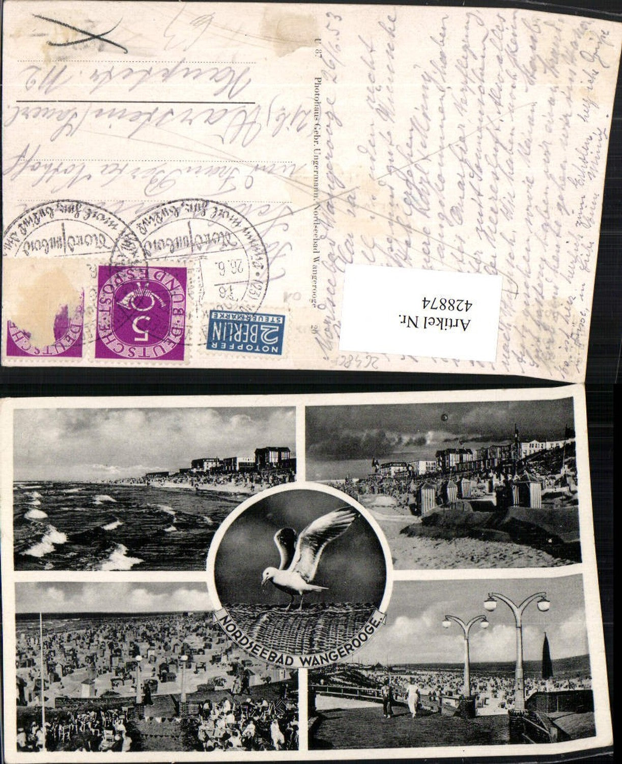 428874,Nordseebad Wangerooge Strand Strandleben Möwe Mehrbildkarte