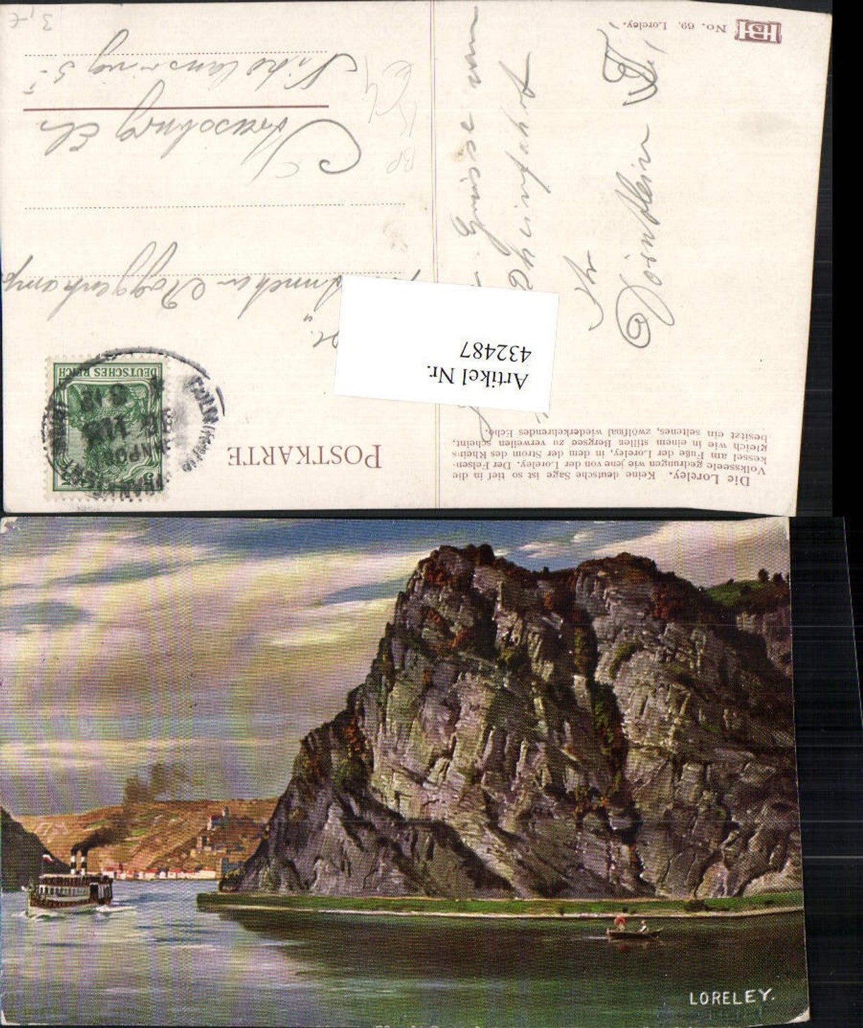 432487,Künstler AK Loreley b. St. Goarshausen Bahnpost Zug 118