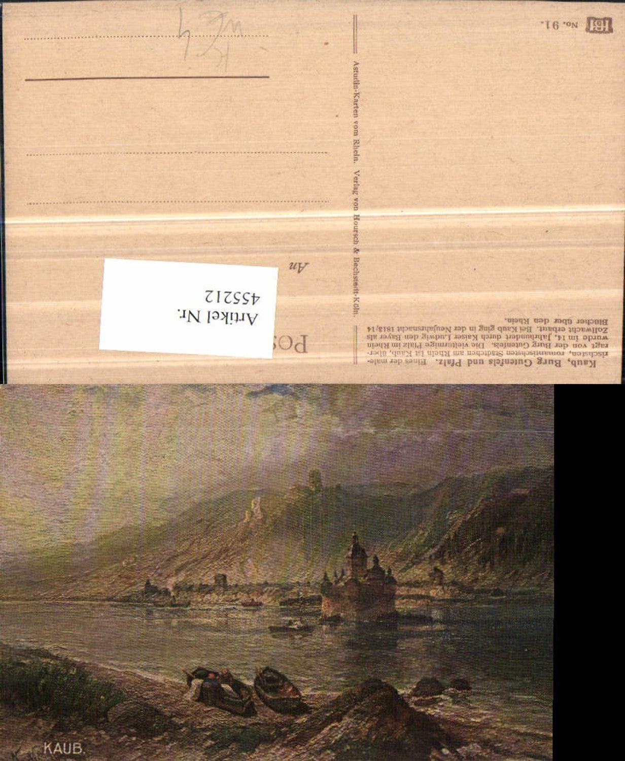 455212,Künstler AK N. Astudin Kaub Burg Gutenfels u. Pfalzgrafenstein
