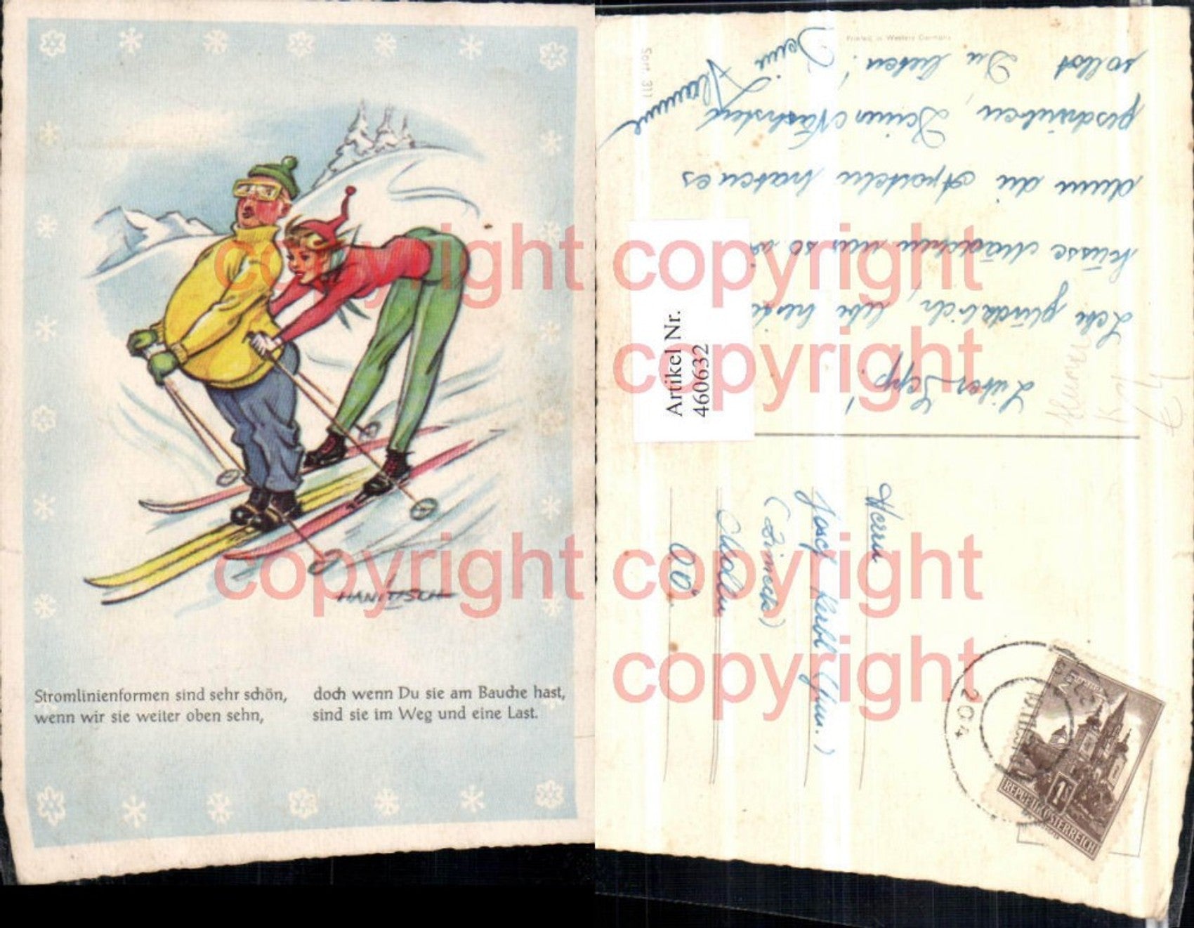 460632,Künstler AK Hanitzsch Völlerei Skifahrer Spruch Humor