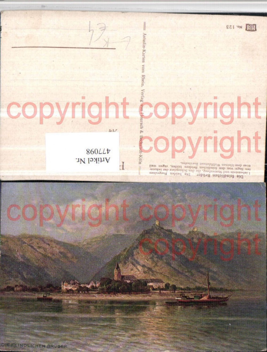 477098,Künstler AK N. Astudin Feindlichen Brüder Burgen b. Kamp-Bornhofen