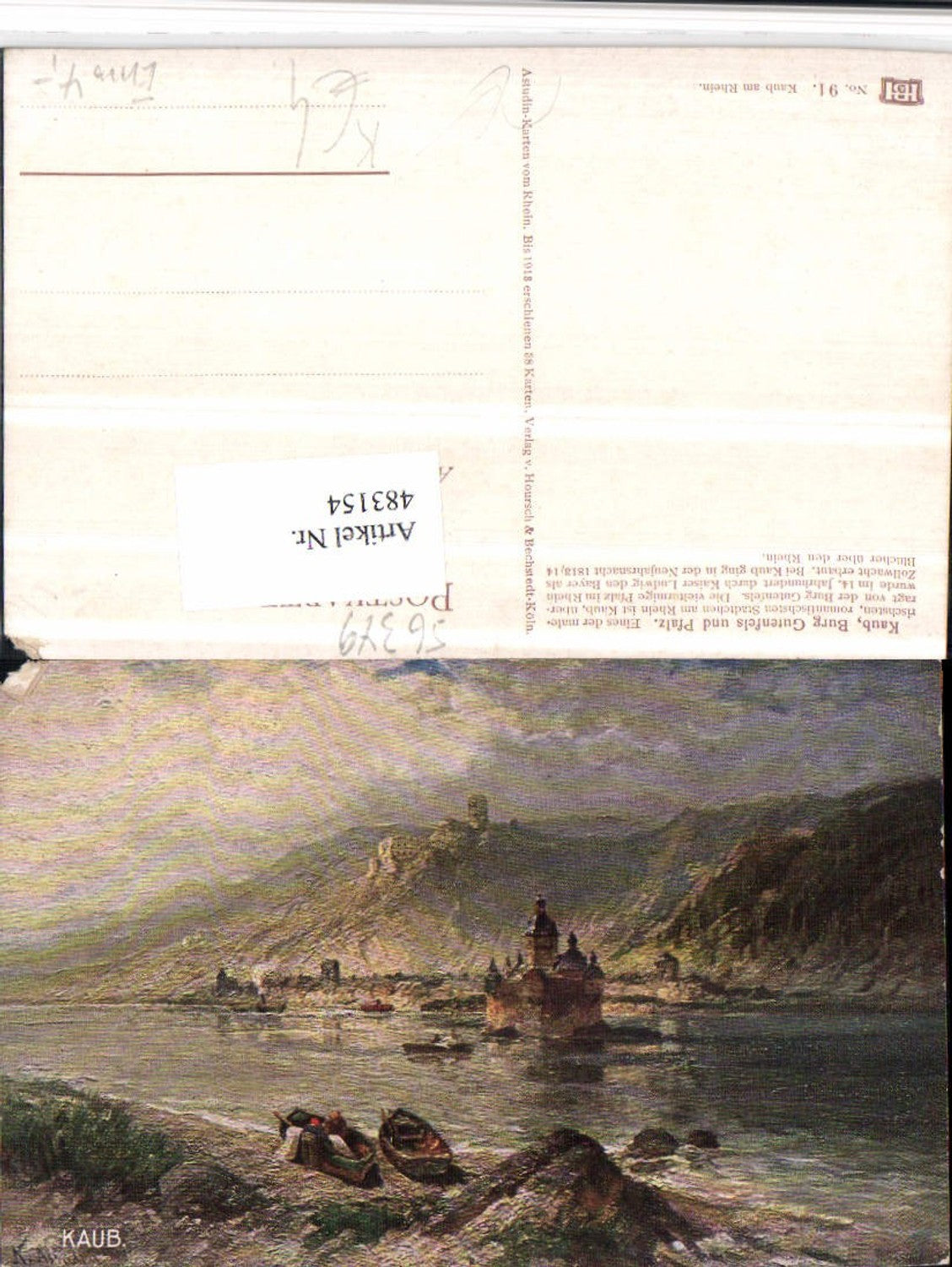 483154,Künstler AK Astudin Kaub am Rhein Burg Gutenfels u. Pfalz