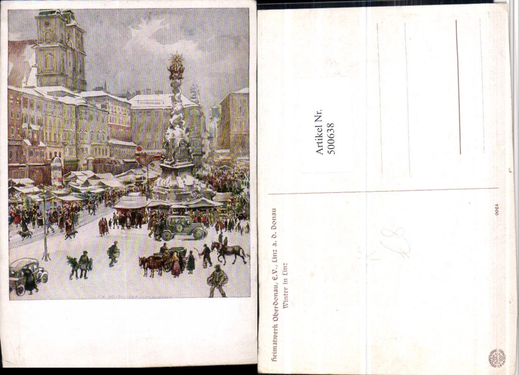 500638,Künstler AK F.X. Weidinger Linz an d. Donau Hauptplatz Pestsäule