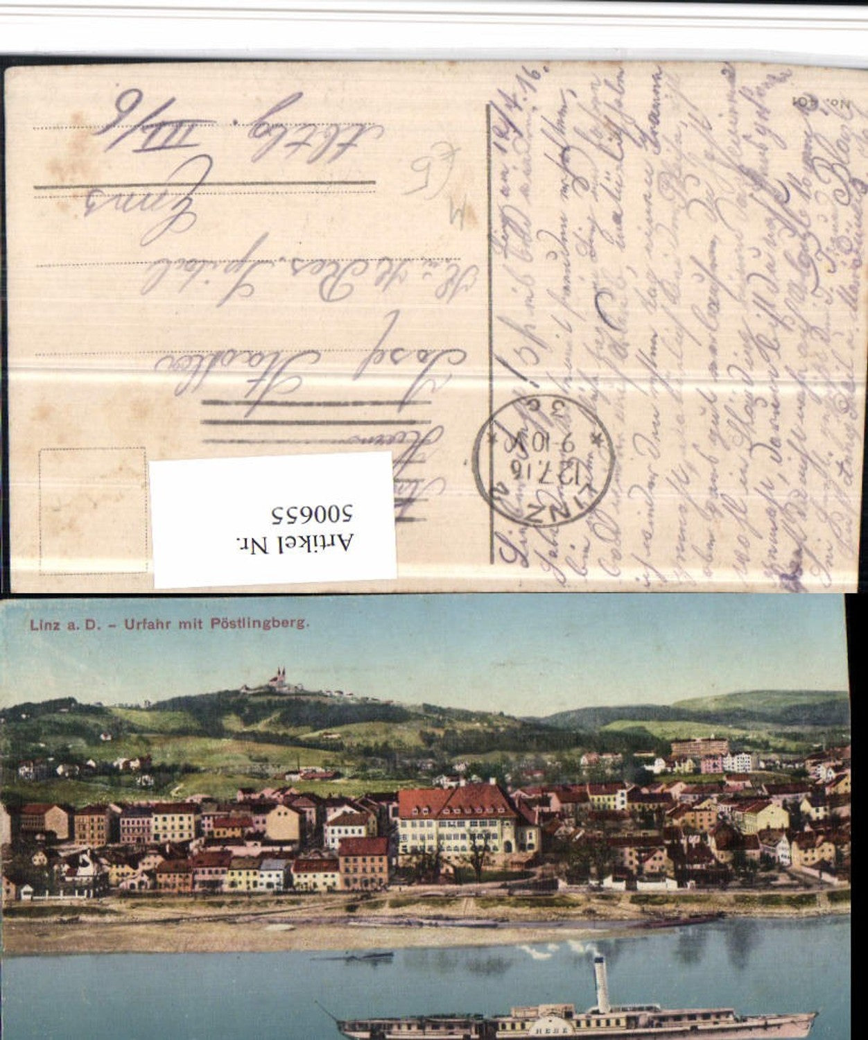 500655,Linz an d. Donau Urfahr Teilansicht m. Pöstlingberg Dampfer