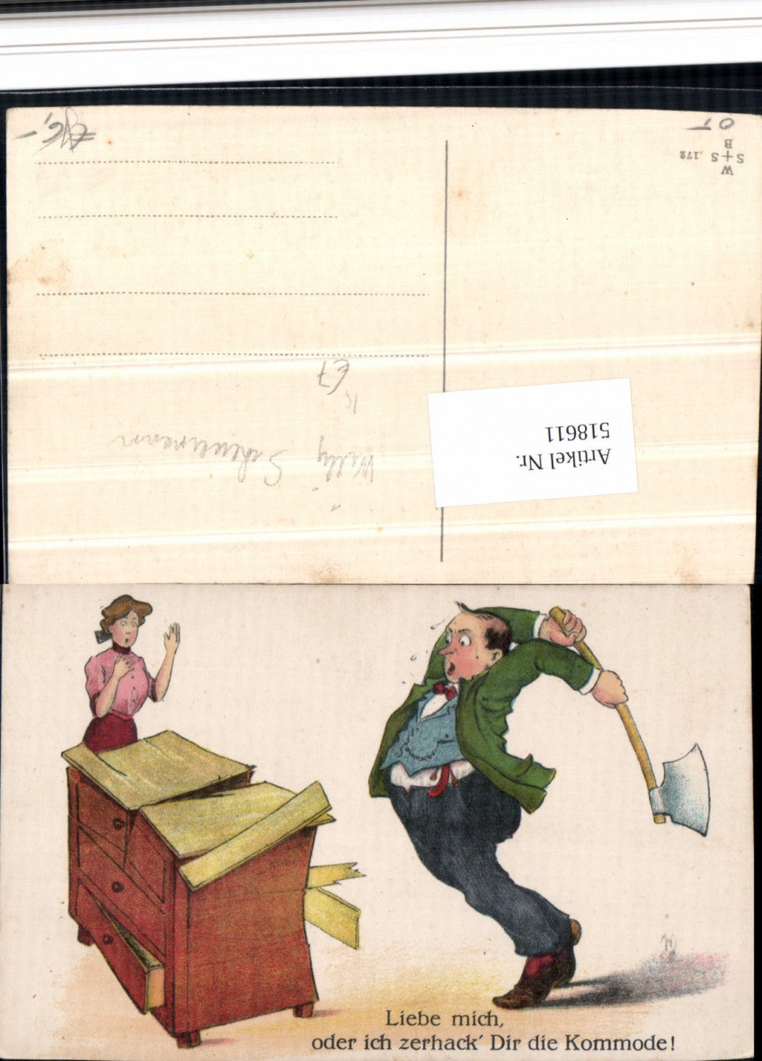 518611,Künstler AK Willi Scheuermann Hacke Exzentriker Kommode zerstört