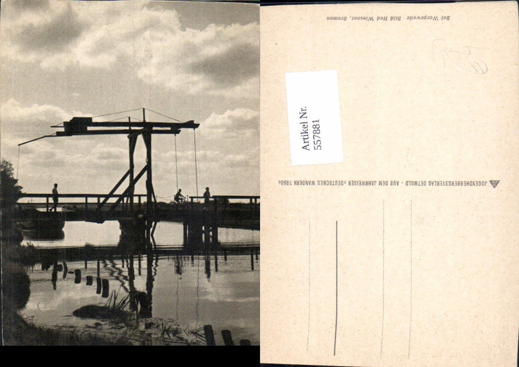 557881,Worpswede Brücke Drehbrücke Radfahrer Schiff