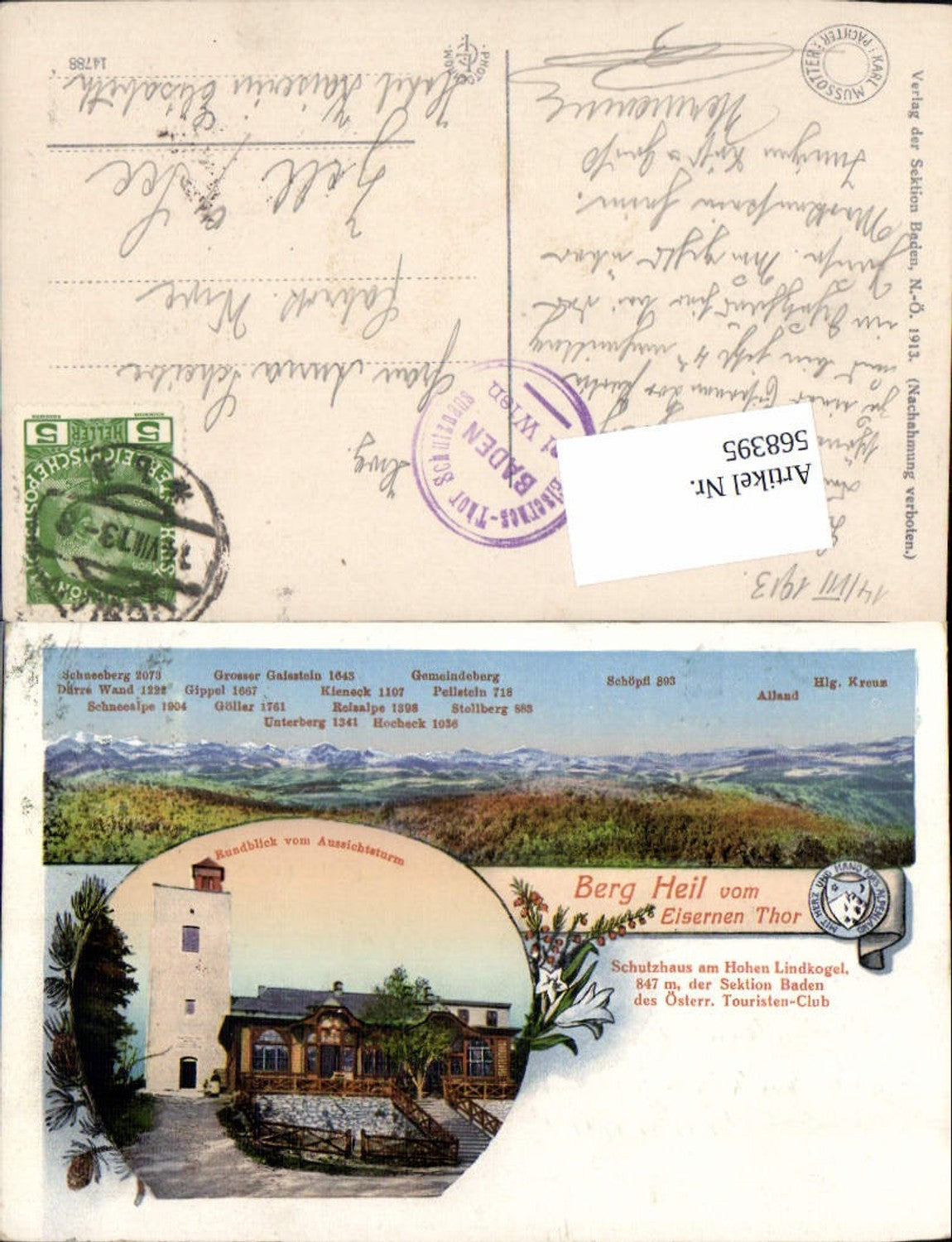 568395,Lithographie Baden bei Wien Schutzhaus Lindkogel Eisernes Tor