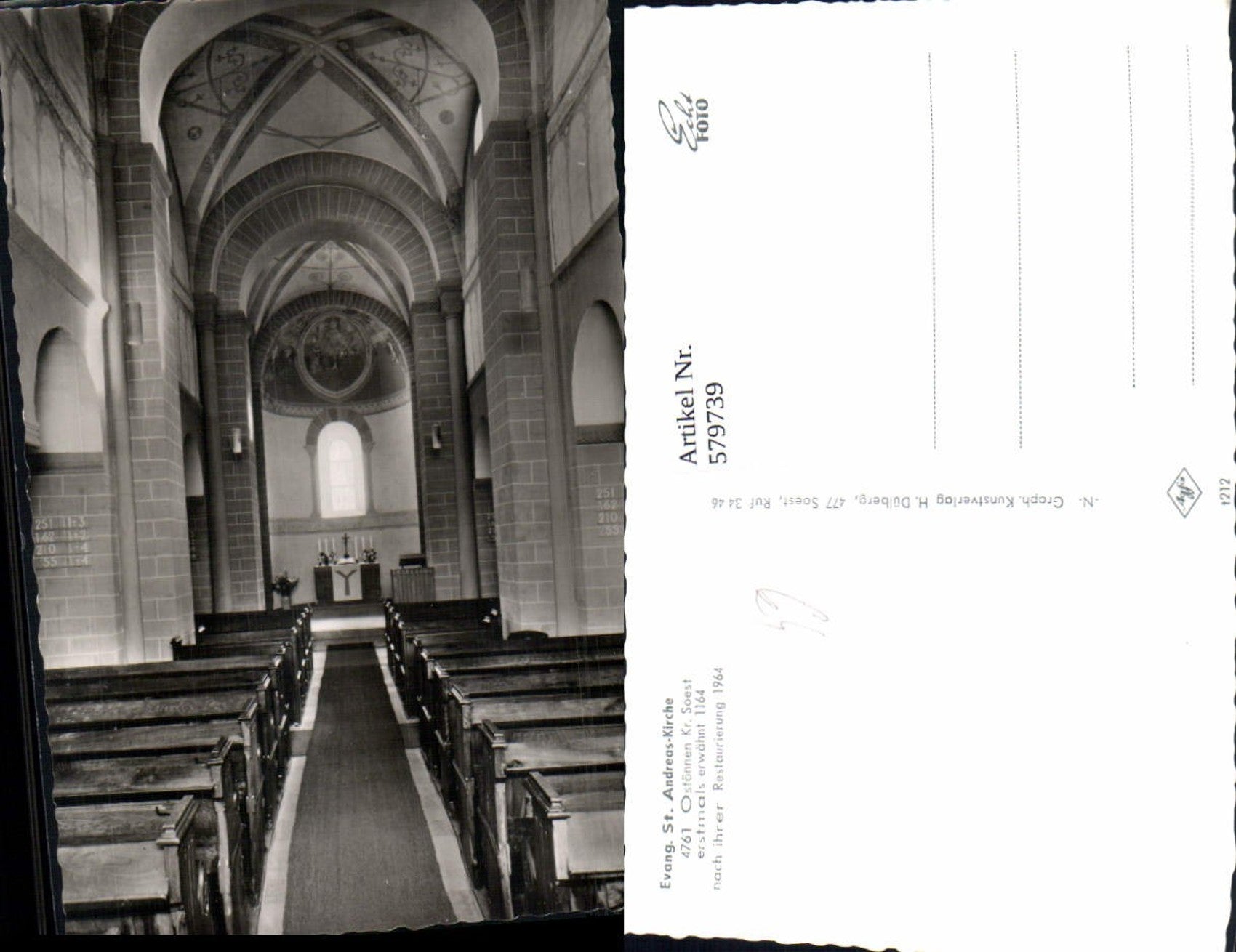 579739,Foto Ak Soest Ostönnen Evang. St Andreas Kirche Innenansicht Altar